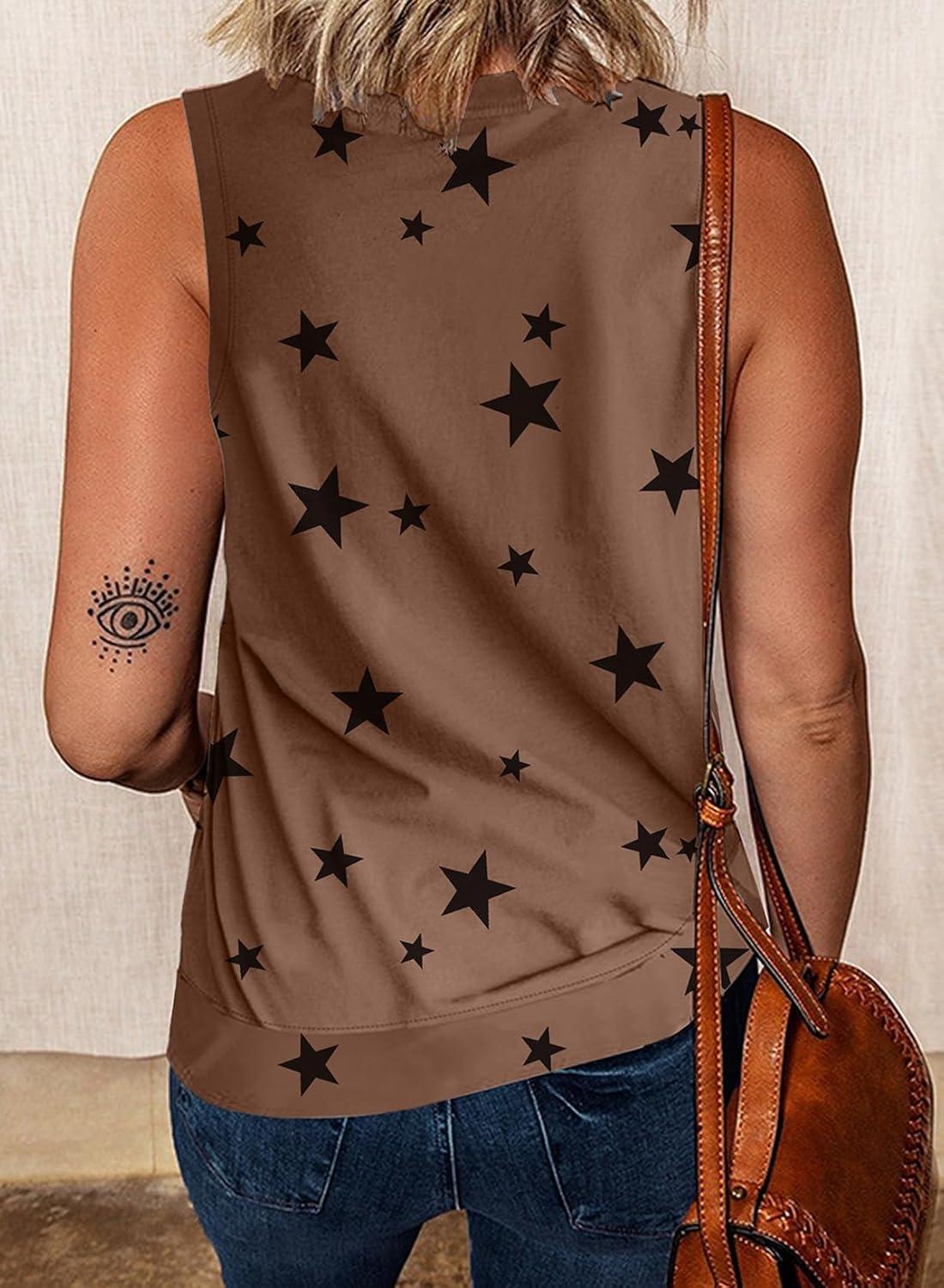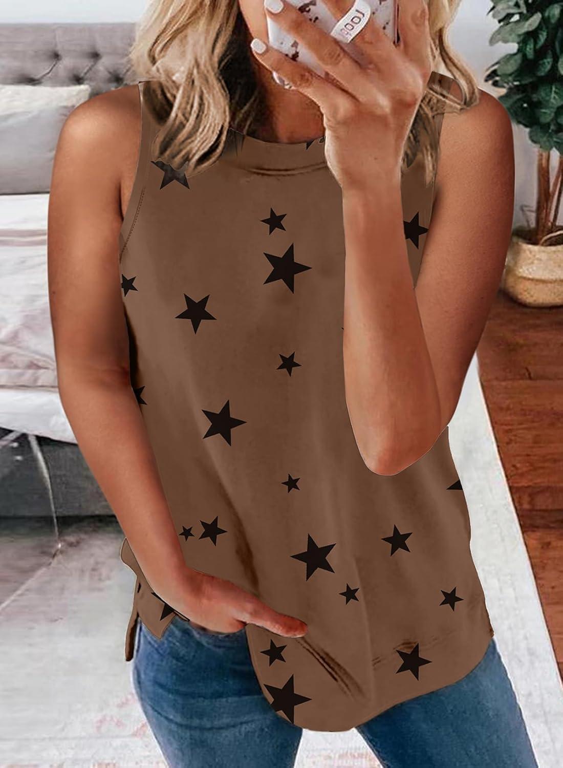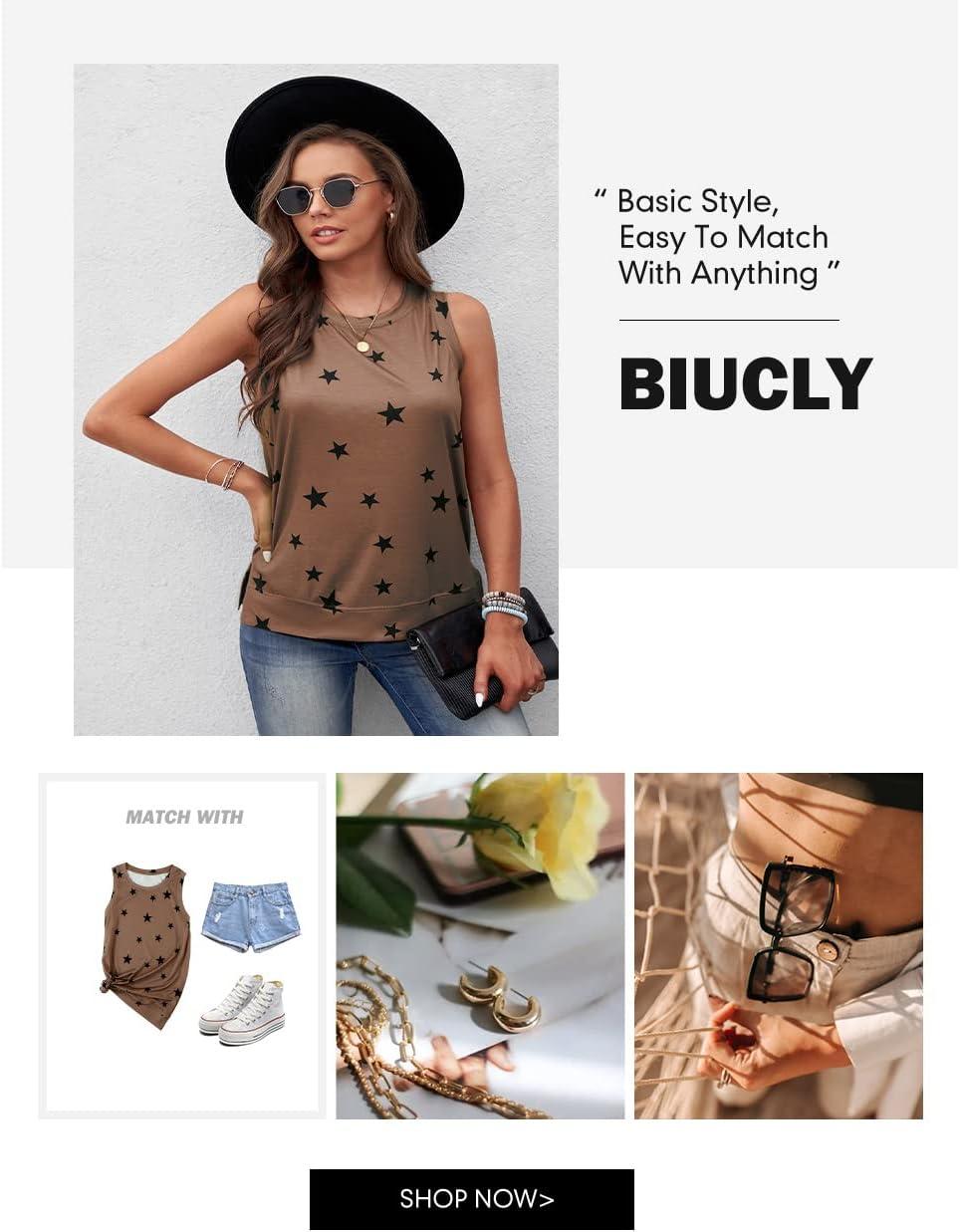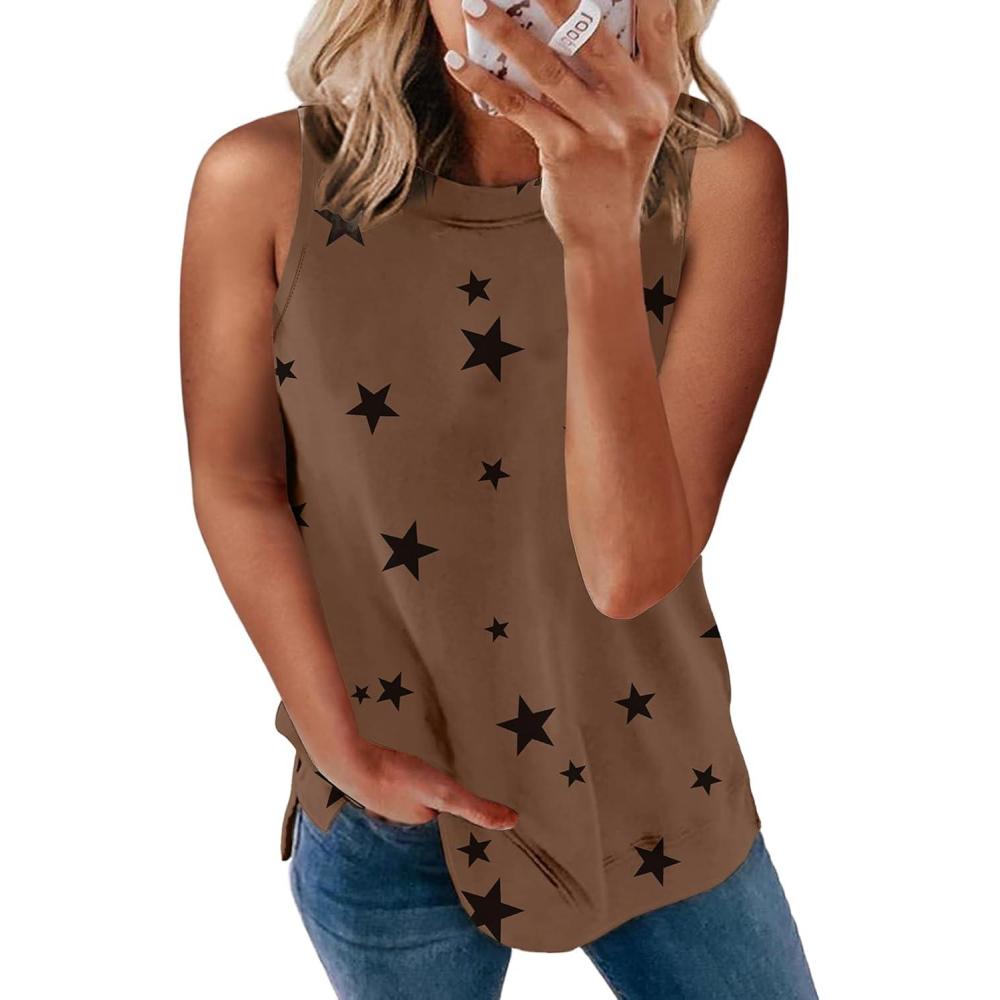 Biucly 2025 Womens Summer Crewneck Sleeveless Basic Tank Tops Casual Camisole Shirts Cute Tops Loose Fit(Star Brown)