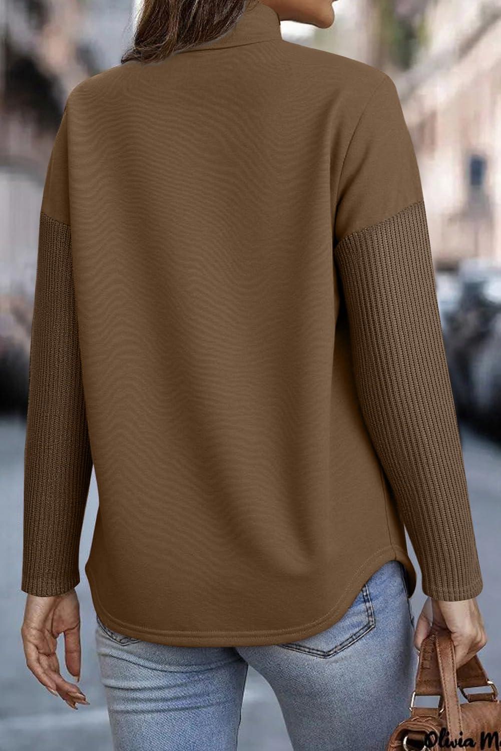 SHEWIN Fall Womens Oversized Sweatshirt Button Up Comfy Pullover Sweatshirt(Dark Brown)