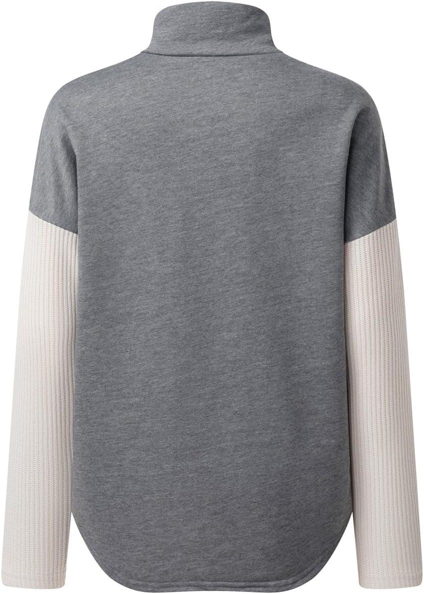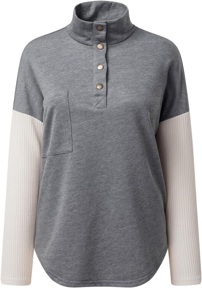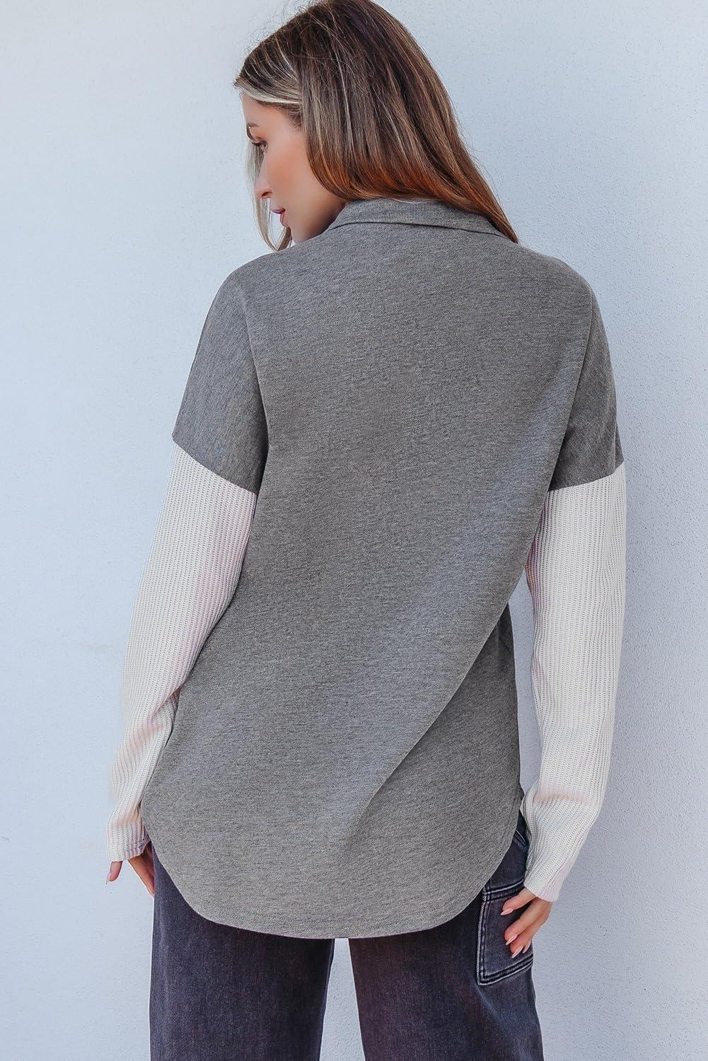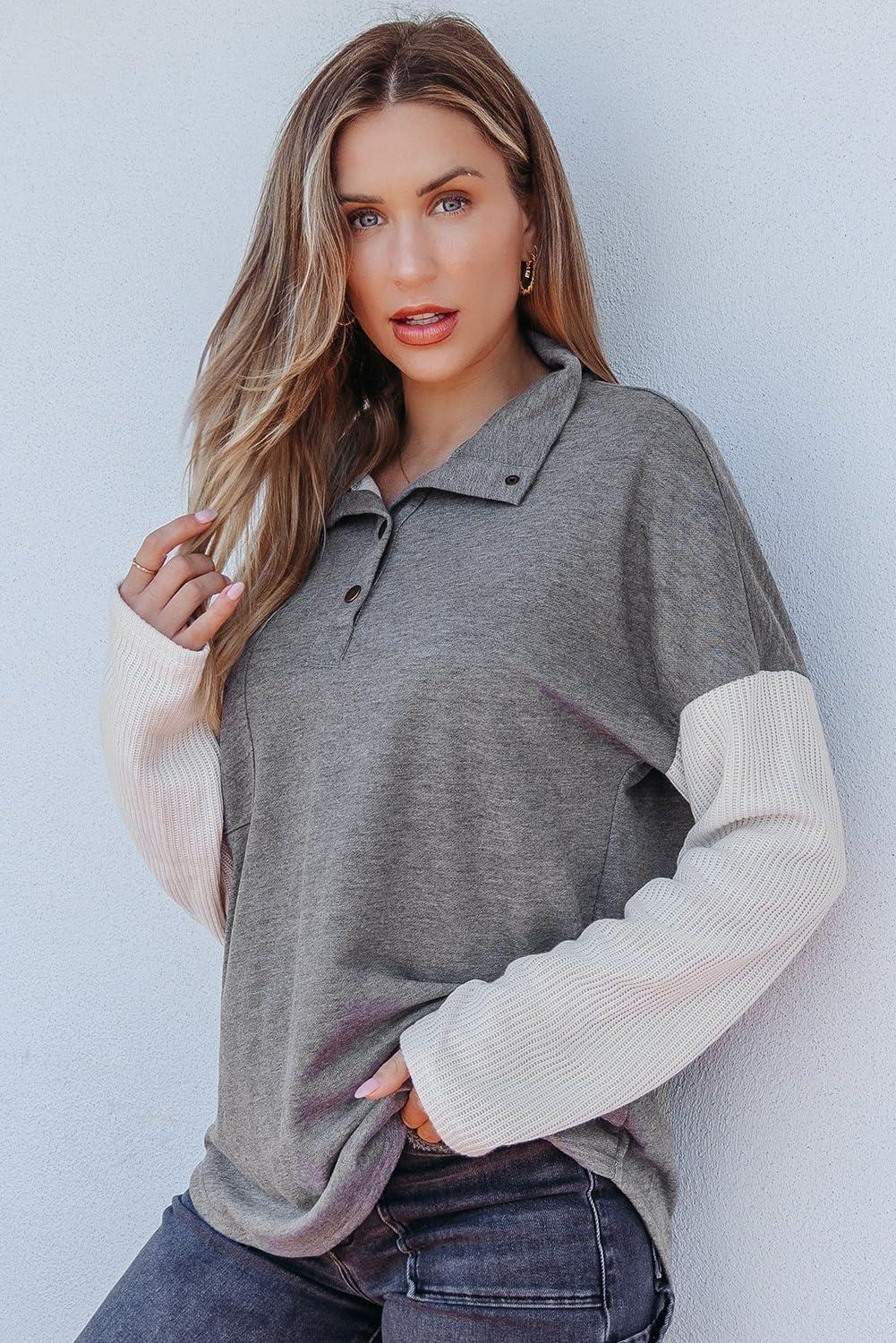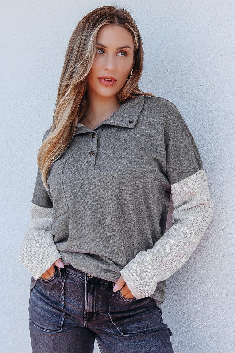 SHEWIN Fall Womens Oversized Sweatshirt Button Up Comfy Pullover Sweatshirt(Grey)