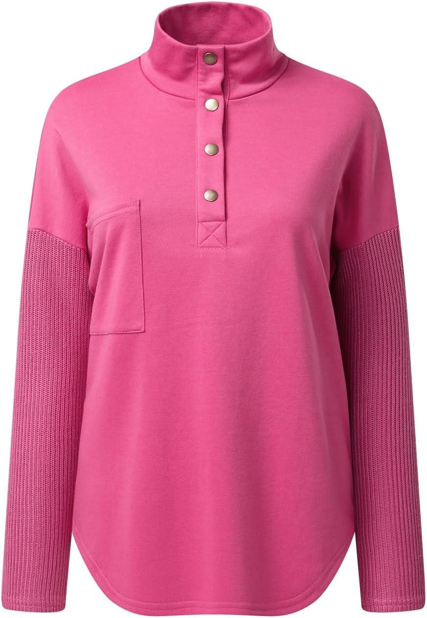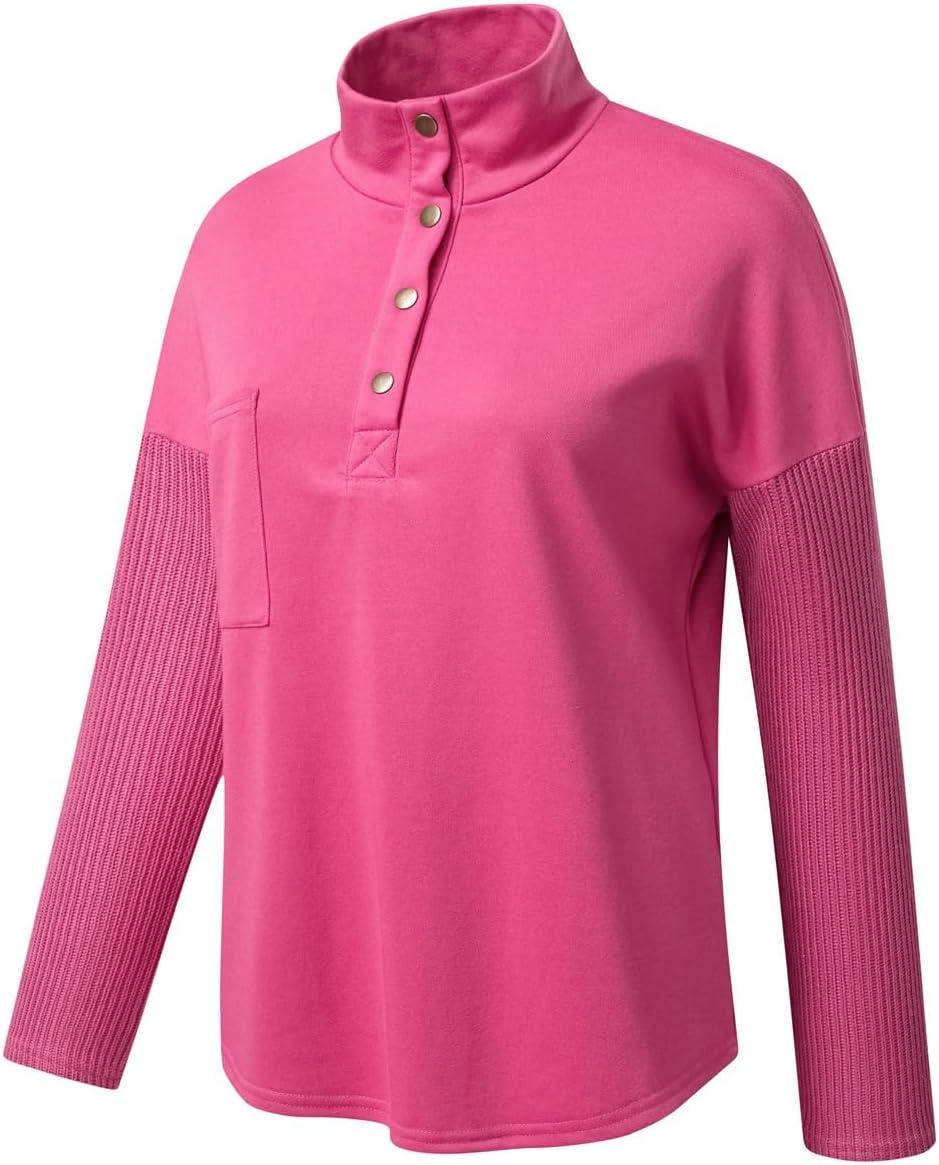 SHEWIN Fall Womens Oversized Sweatshirt Button Up Comfy Pullover Sweatshirt(Rose Red)