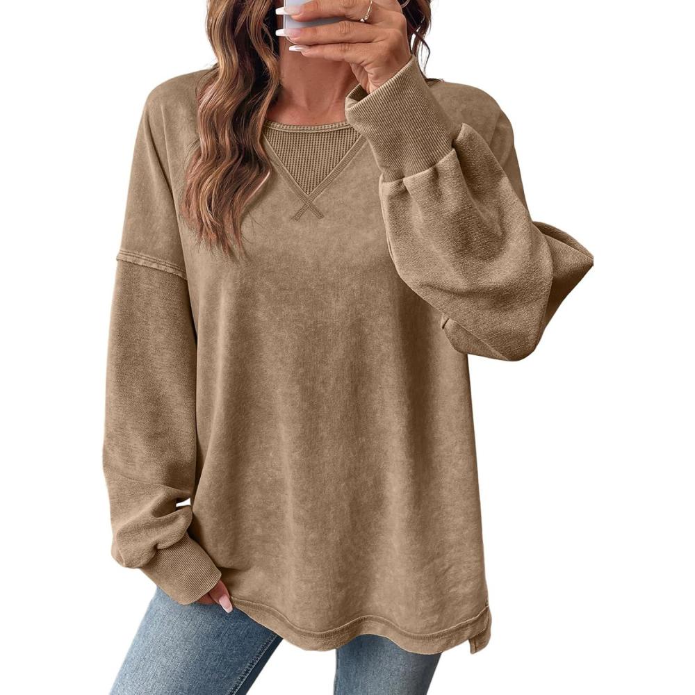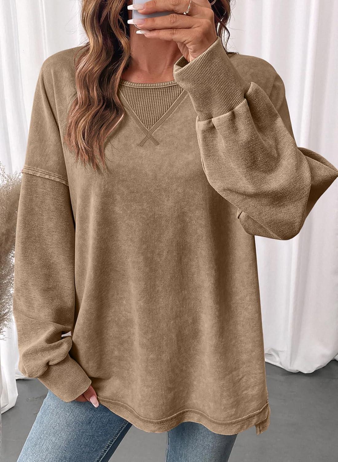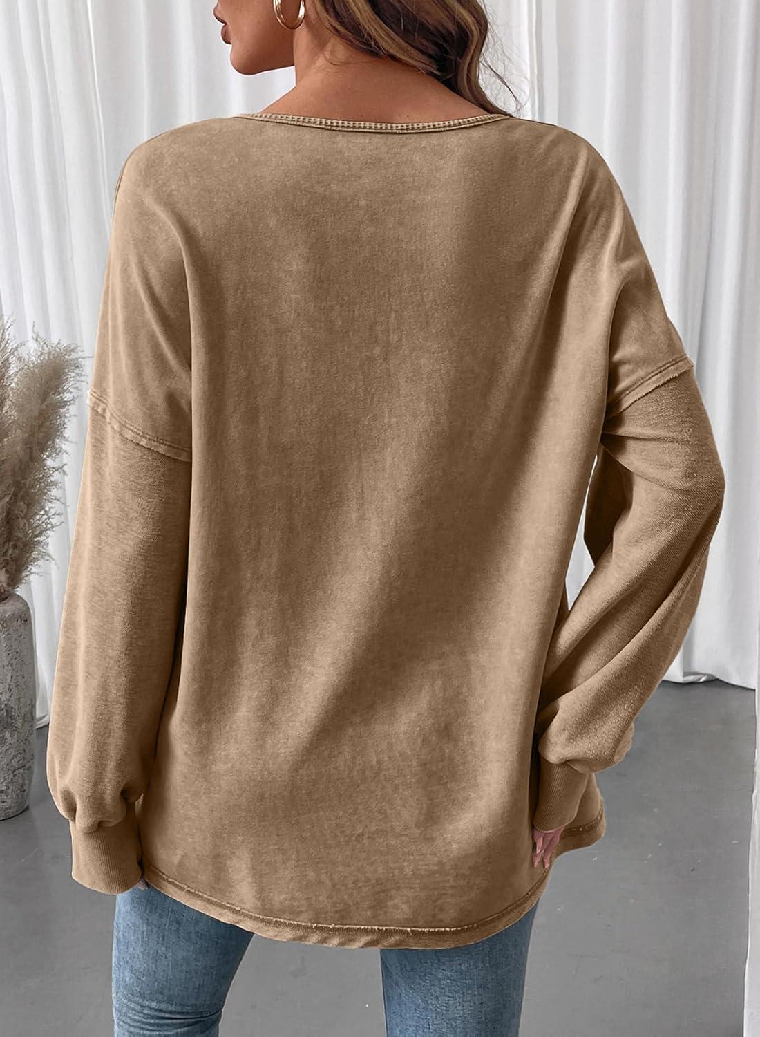 SHEWIN Oversized Sweatshirt for Women Long Sleeve Crewneck Sweatshirts Pullover Womens Fall Fashion 2025(Khaki)