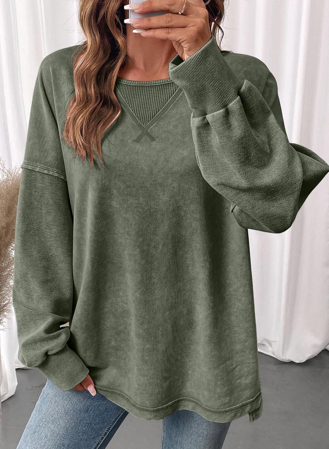 SHEWIN Oversized Sweatshirt for Women Long Sleeve Crewneck Sweatshirts Pullover Womens Fall Fashion 2025(Laurel Green)