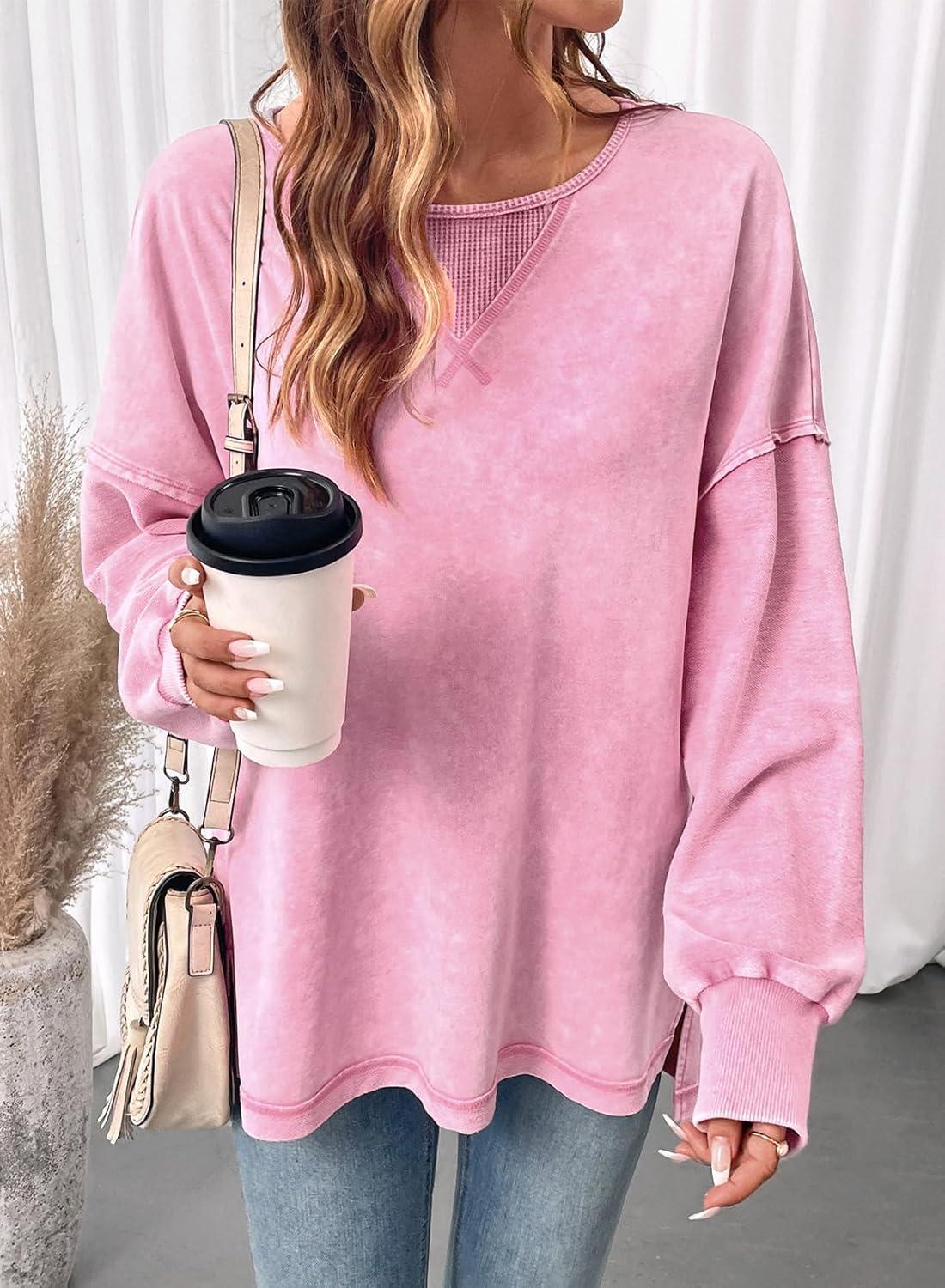 SHEWIN Oversized Sweatshirt for Women Long Sleeve Crewneck Sweatshirts Pullover Womens Fall Fashion 2025(Pink)
