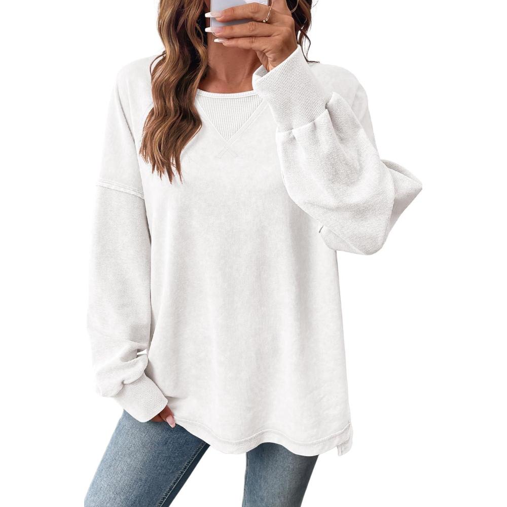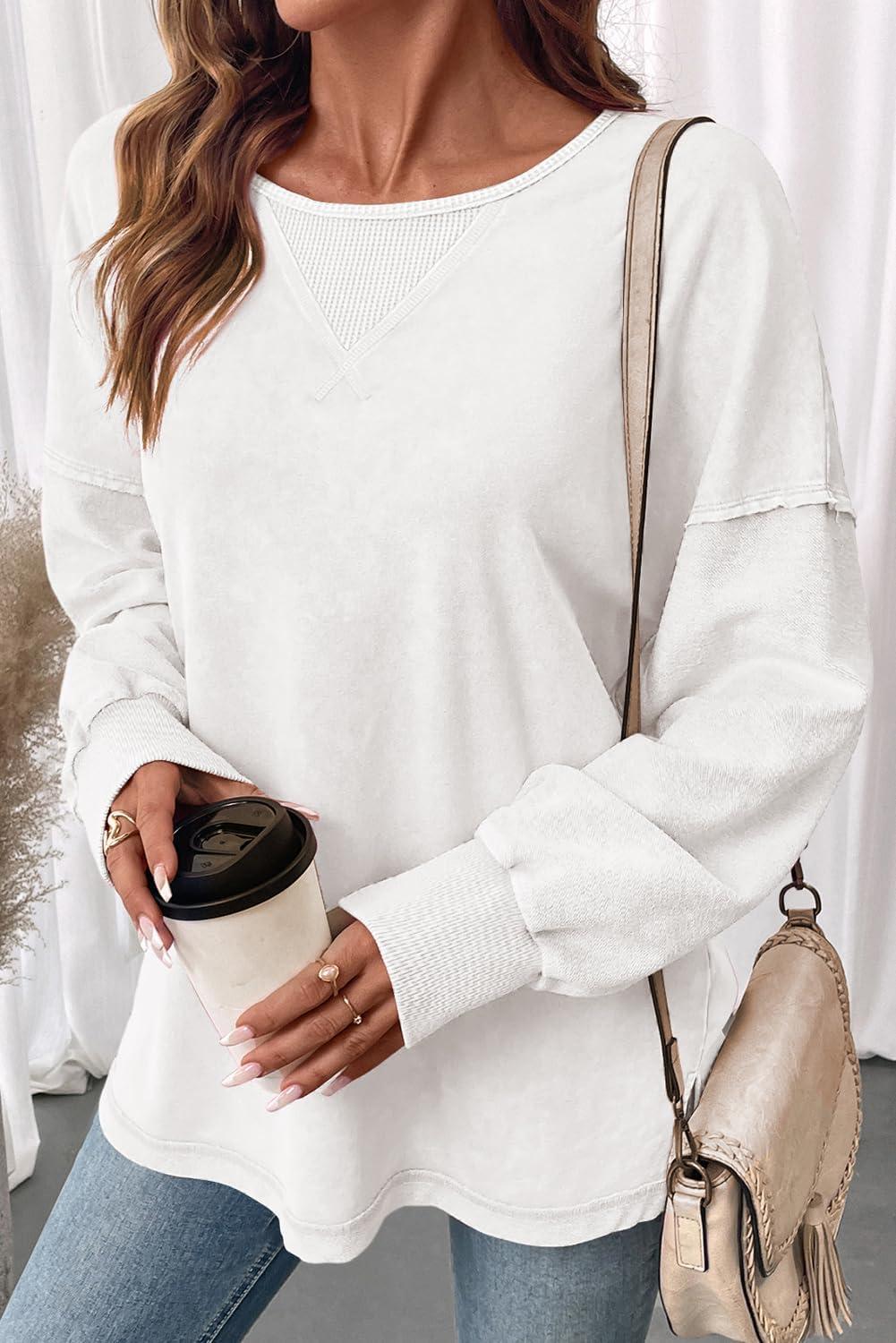 SHEWIN Oversized Sweatshirt for Women Long Sleeve Crewneck Sweatshirts Pullover Womens Fall Fashion 2025(White)