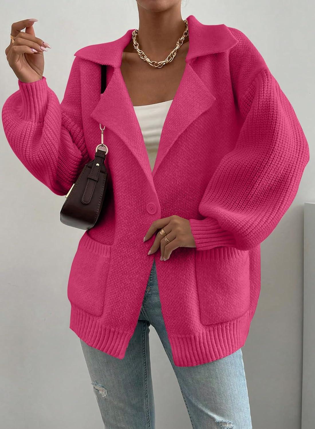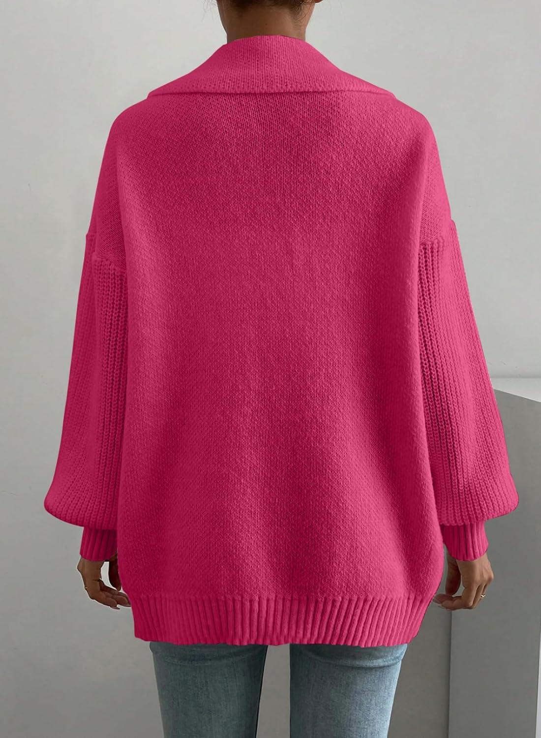 SHEWIN Women Open Front Knit Sweater Casual Long Sleeve V Neck Cardigan Fall 2025(Z Rose Red)