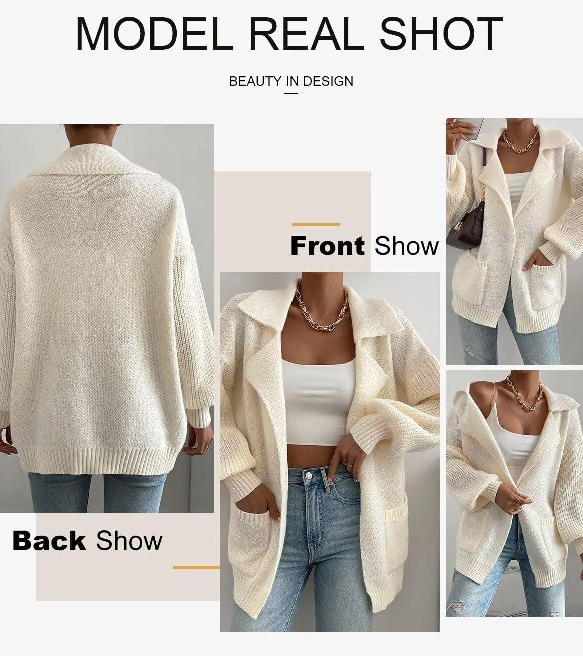 Be the first to review “SHEWIN Women Open Front Knit Sweater Oversized Cardigan with Pocket(Beige)”