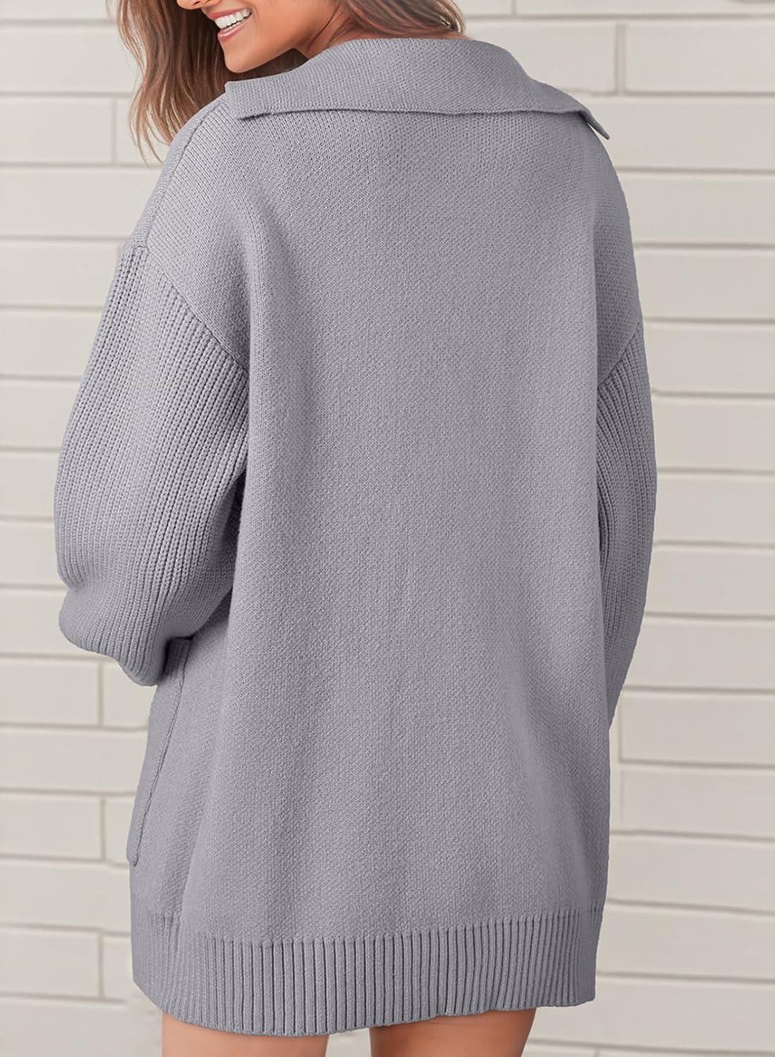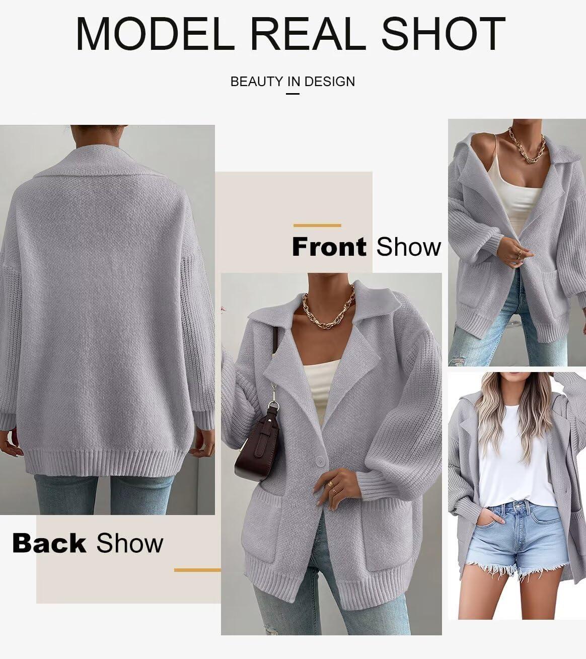 SHEWIN Women Open Front Knit Sweater Oversized Cardigan with Pocket(Gray)