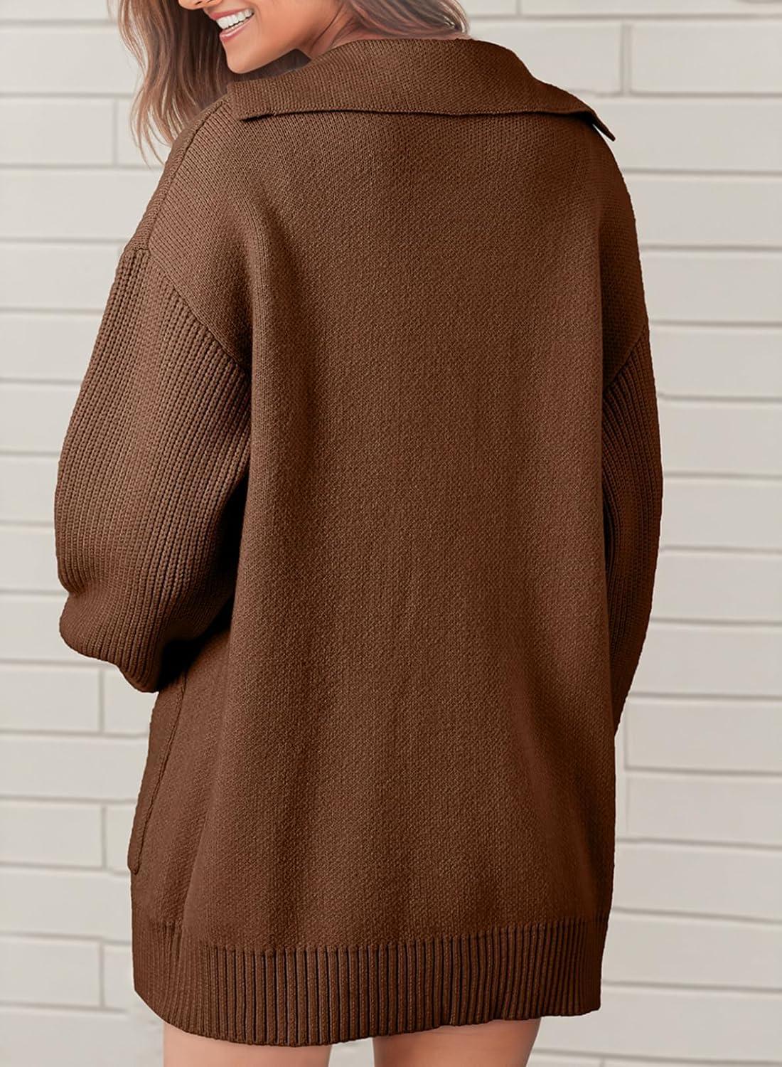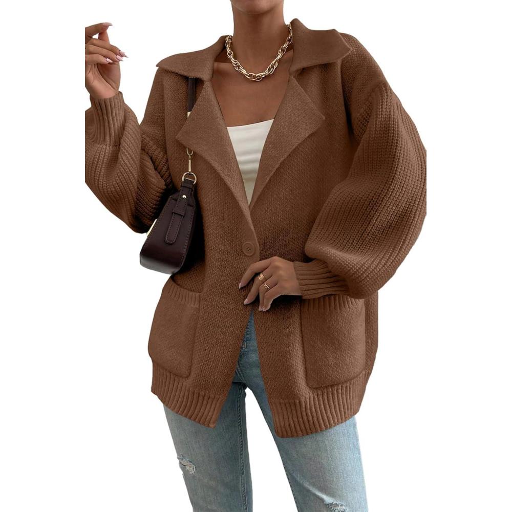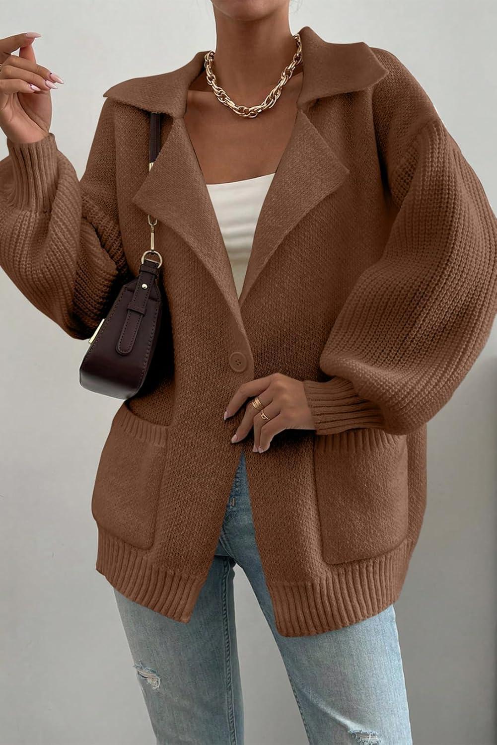 SHEWIN Women Open Front Knit Sweater Oversized Cardigan with Pocket(Pink)
