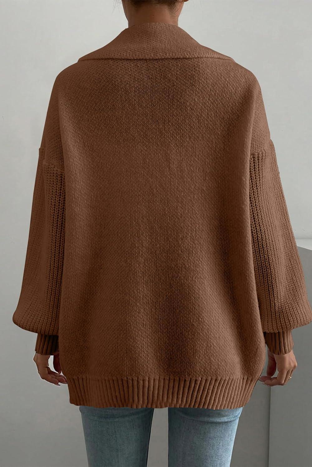 SHEWIN Women Open Front Knit Sweater Oversized Cardigan with Pocket(Vineyard Green)