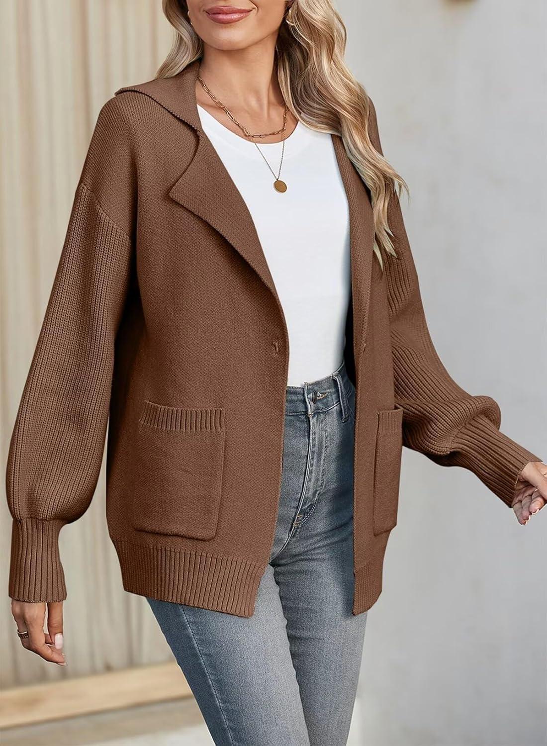 imageSHEWIN Women Open Front Knit Sweater Oversized Cardigan with PocketVineyard Green