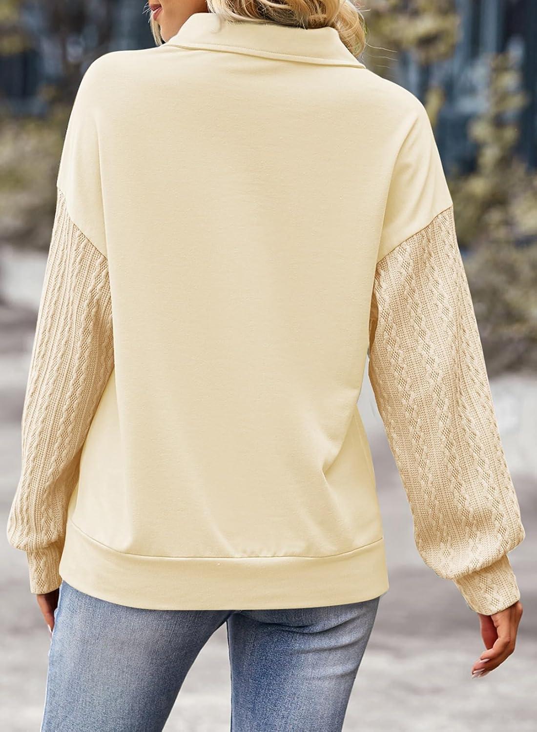 SHEWIN Womens Casual Long Sleeve Half Zip Sweatshirt Loose Pullover Tops Fall Fashion 2025 Quarter Zipper Hoodies(Beige)