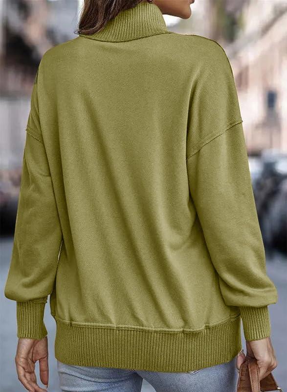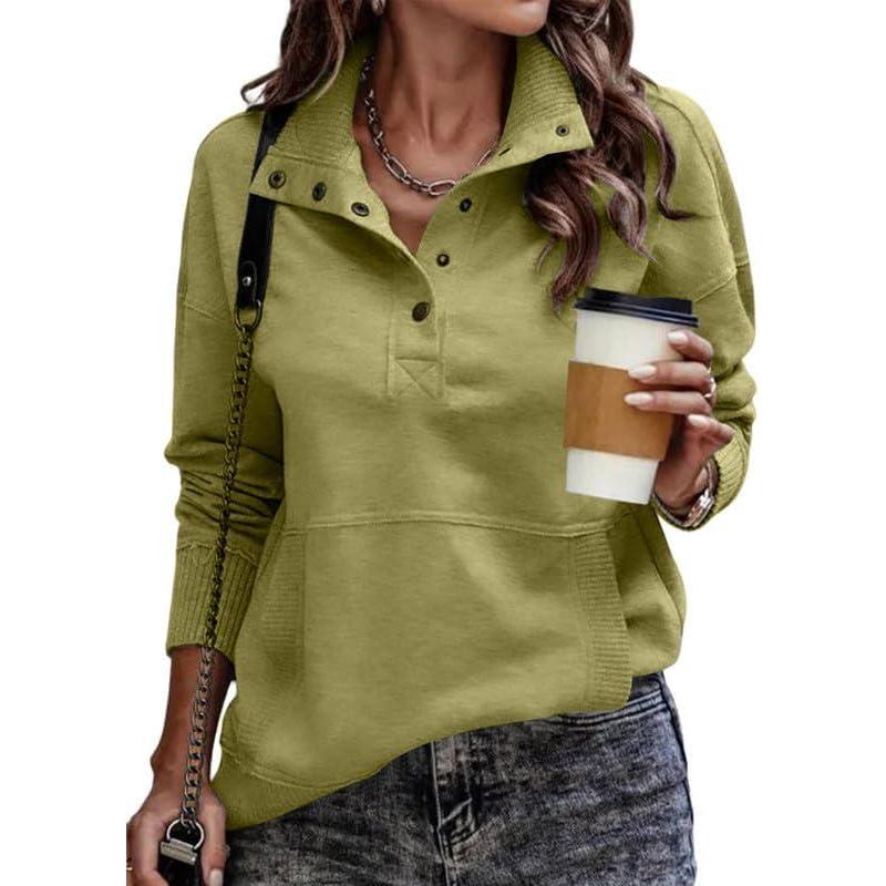 SHEWIN Women’s Casual Long Sleeve Stand Neck Sweatshirt Lightweight Button Drawstring Pullover Tops(C Pickle Green)