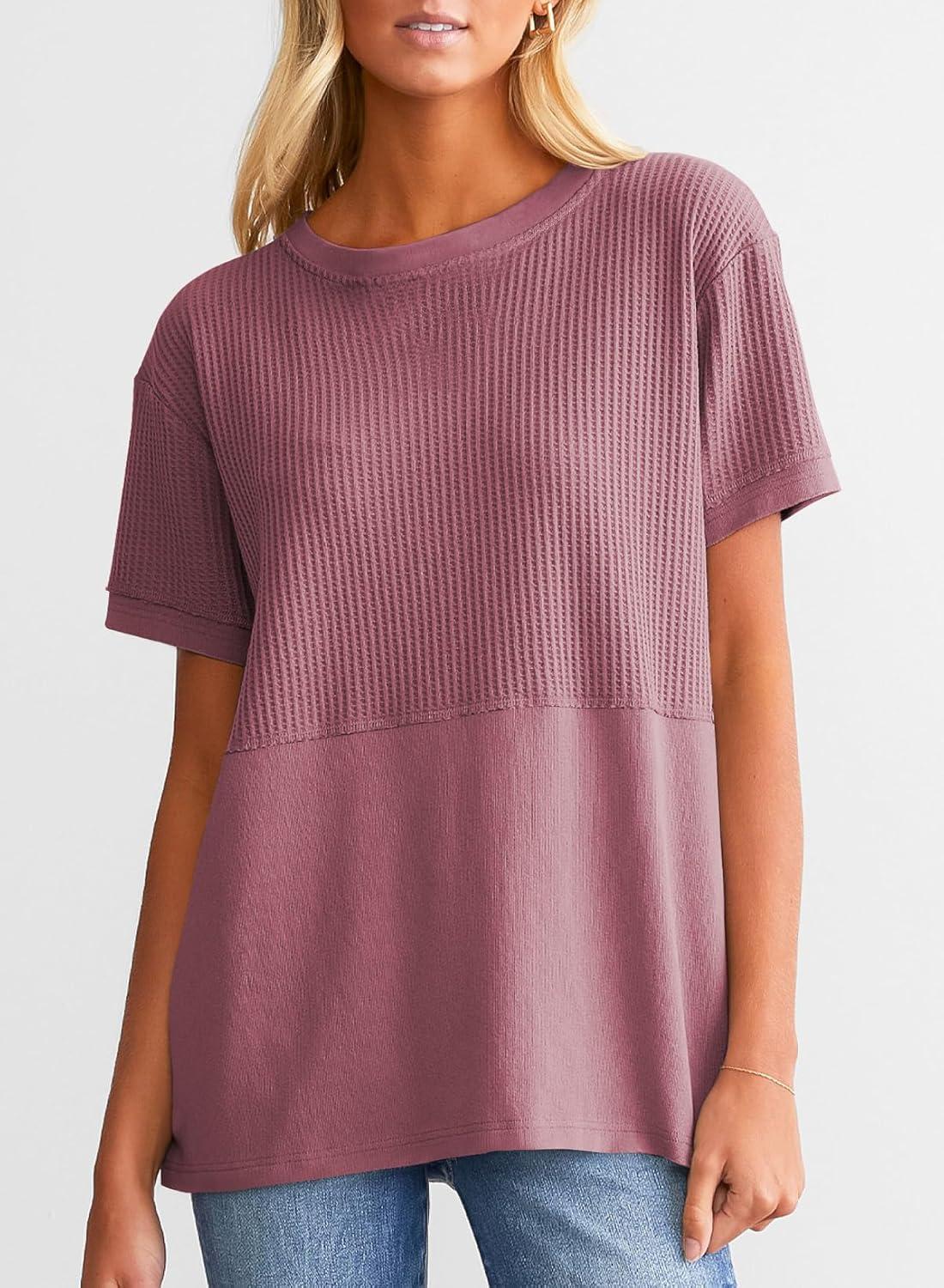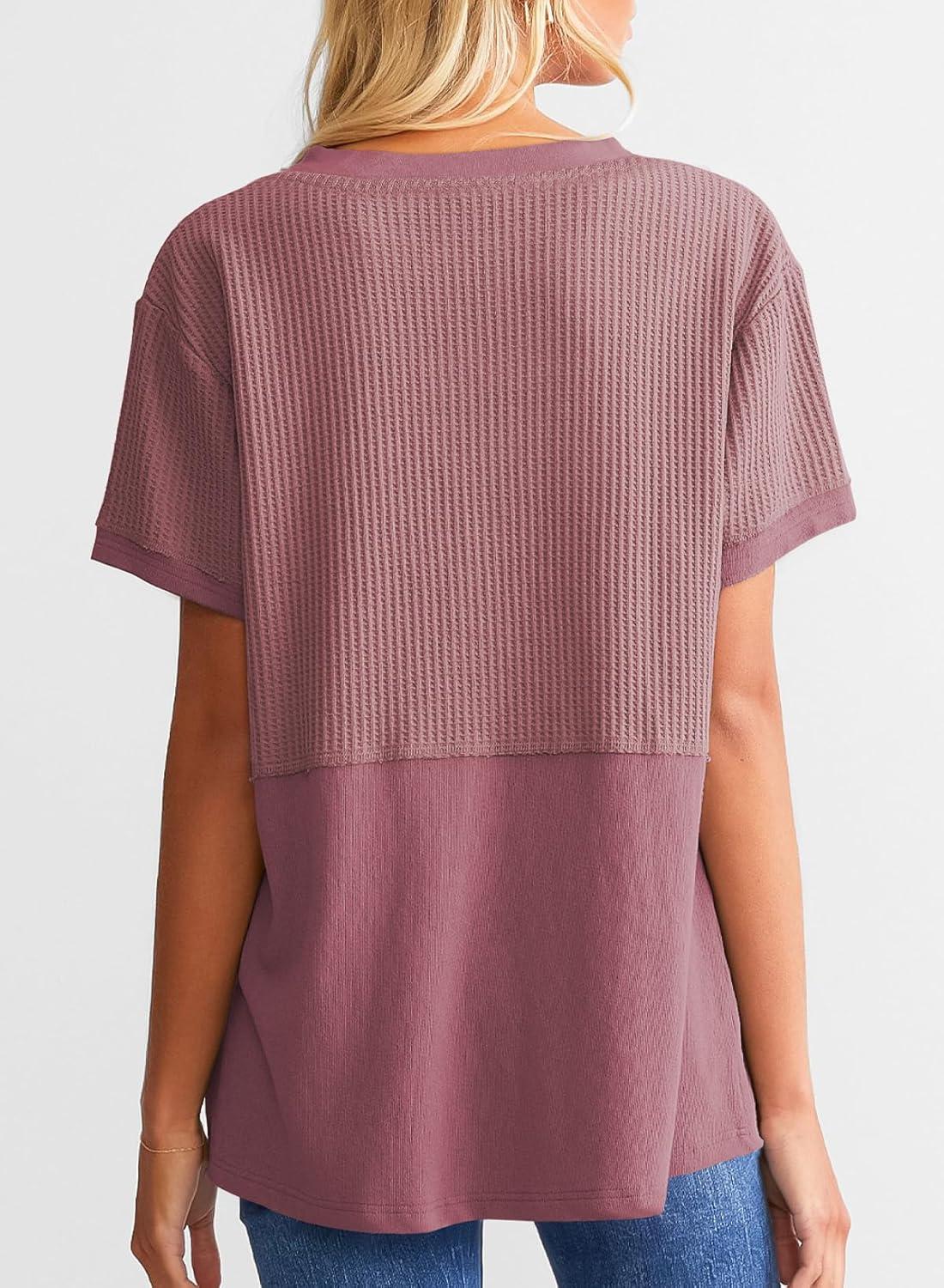 Don’t miss out on our limited-time offer: buy SHEWIN Womens Casual V Neck Waffle Knit Tops Short Sleeve T Shirts Loose Blouses(D Parchment), get {accessory} 50% off!