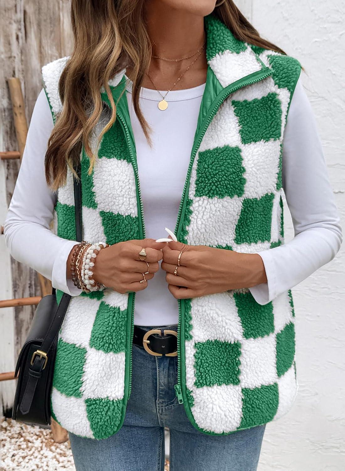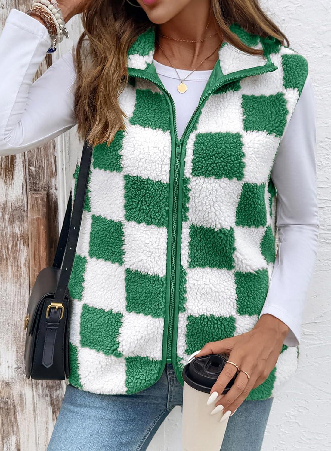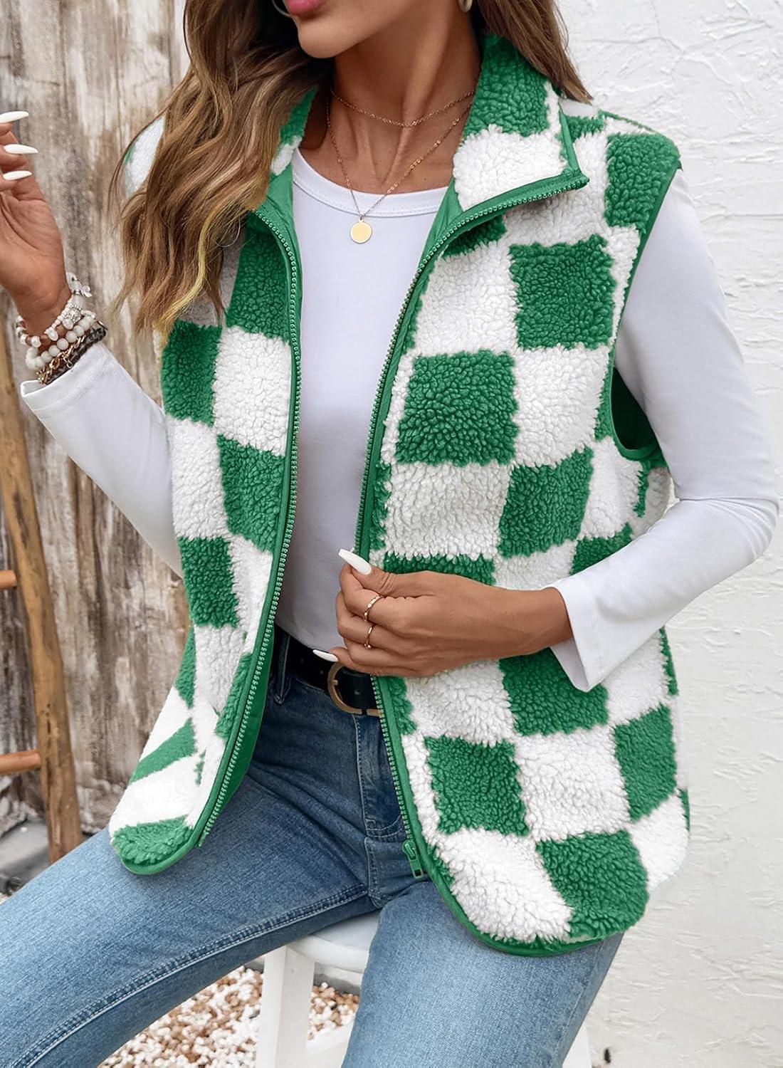 SHEWIN Womens Fleece Vest Casual Sleeveless Jacket Lightweight Outerwear Vests with Pockets Womens Fall Fashion 2025(Green)