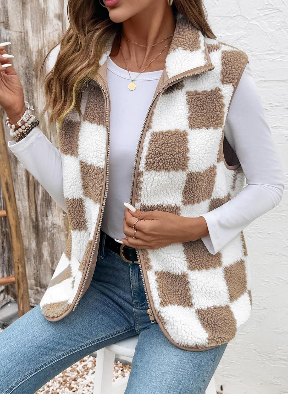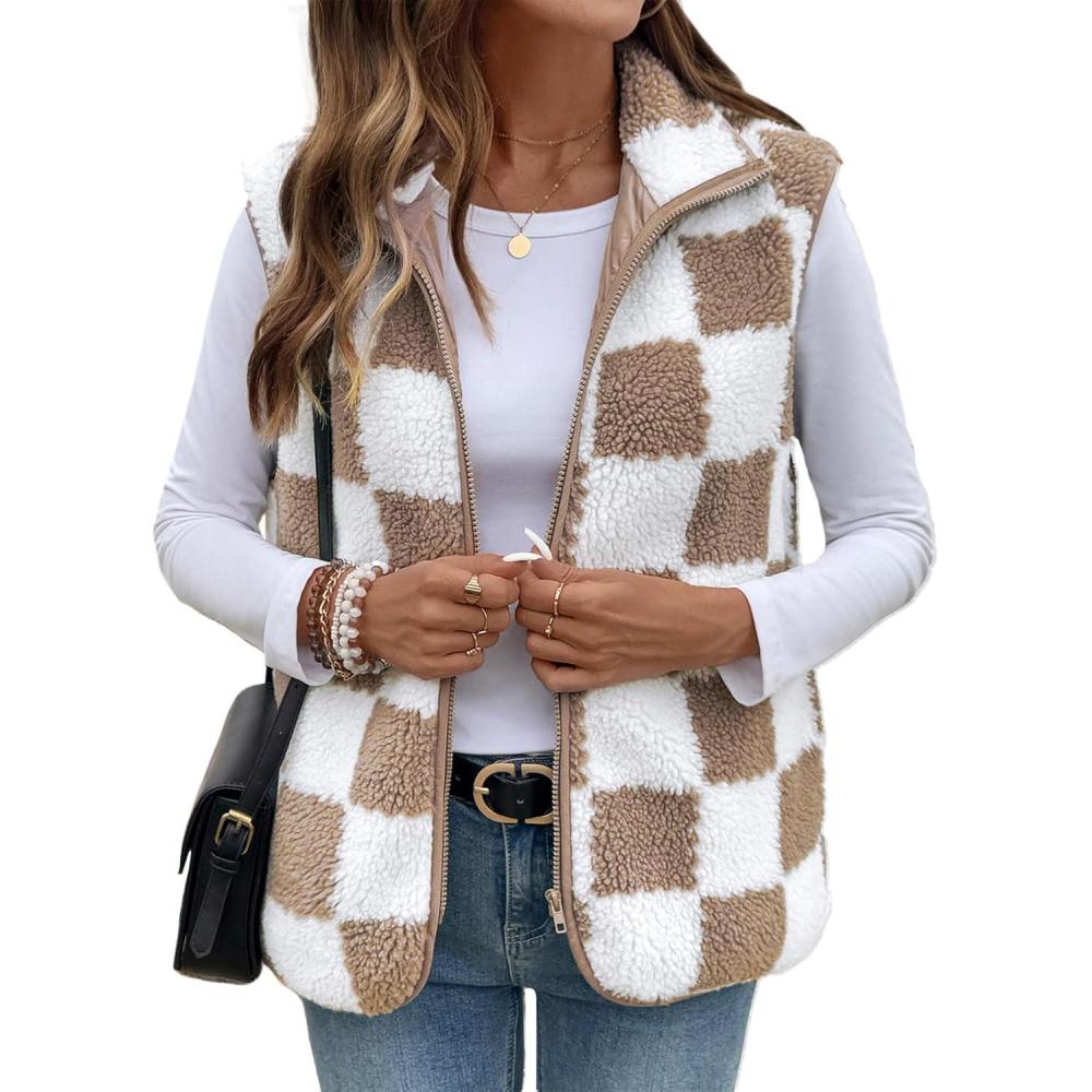 SHEWIN Womens Fleece Vest Casual Sleeveless Jacket Lightweight Outerwear Vests with Pockets Womens Fall Fashion 2025(Pale Khaki)