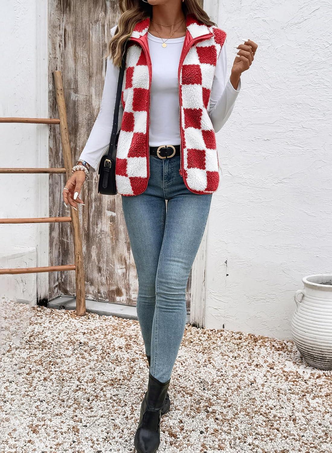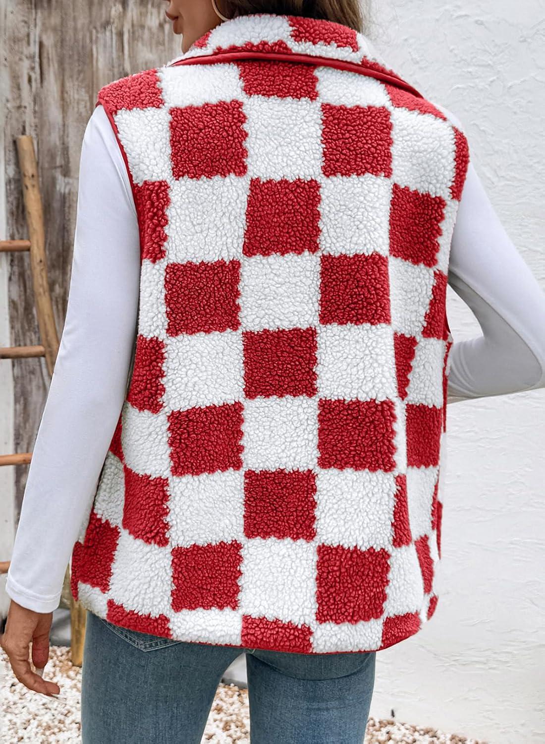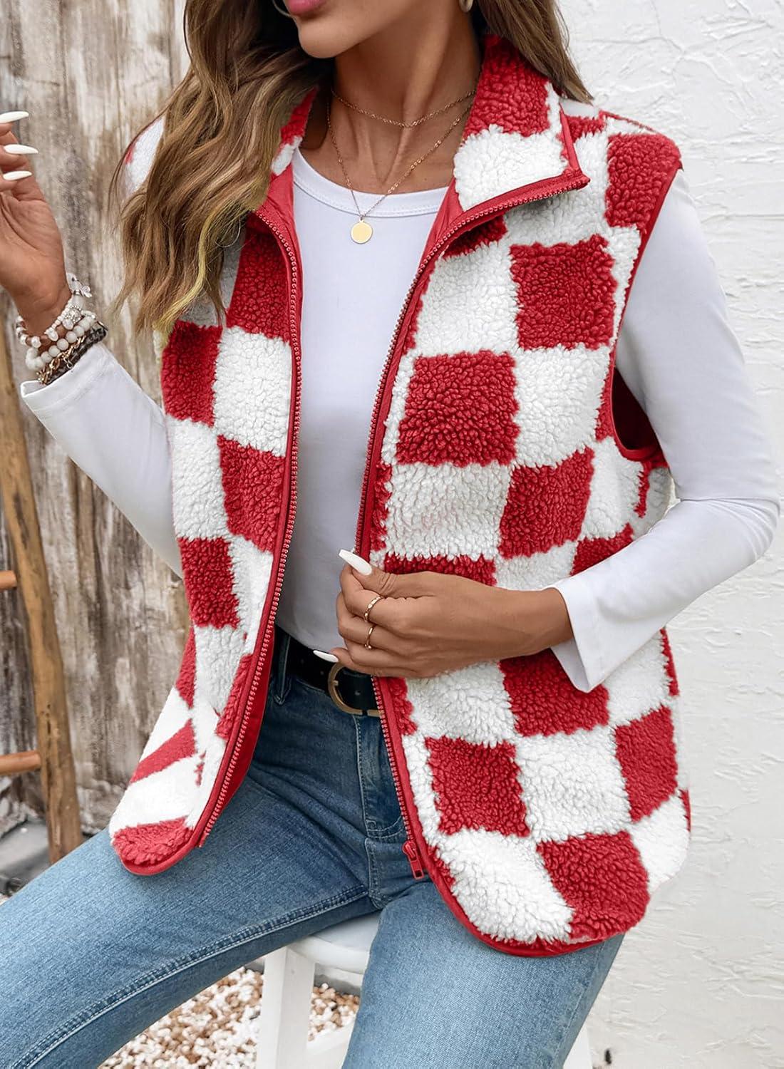 SHEWIN Womens Fleece Vest Casual Sleeveless Jacket Lightweight Outerwear Vests with Pockets Womens Fall Fashion 2025(Red)