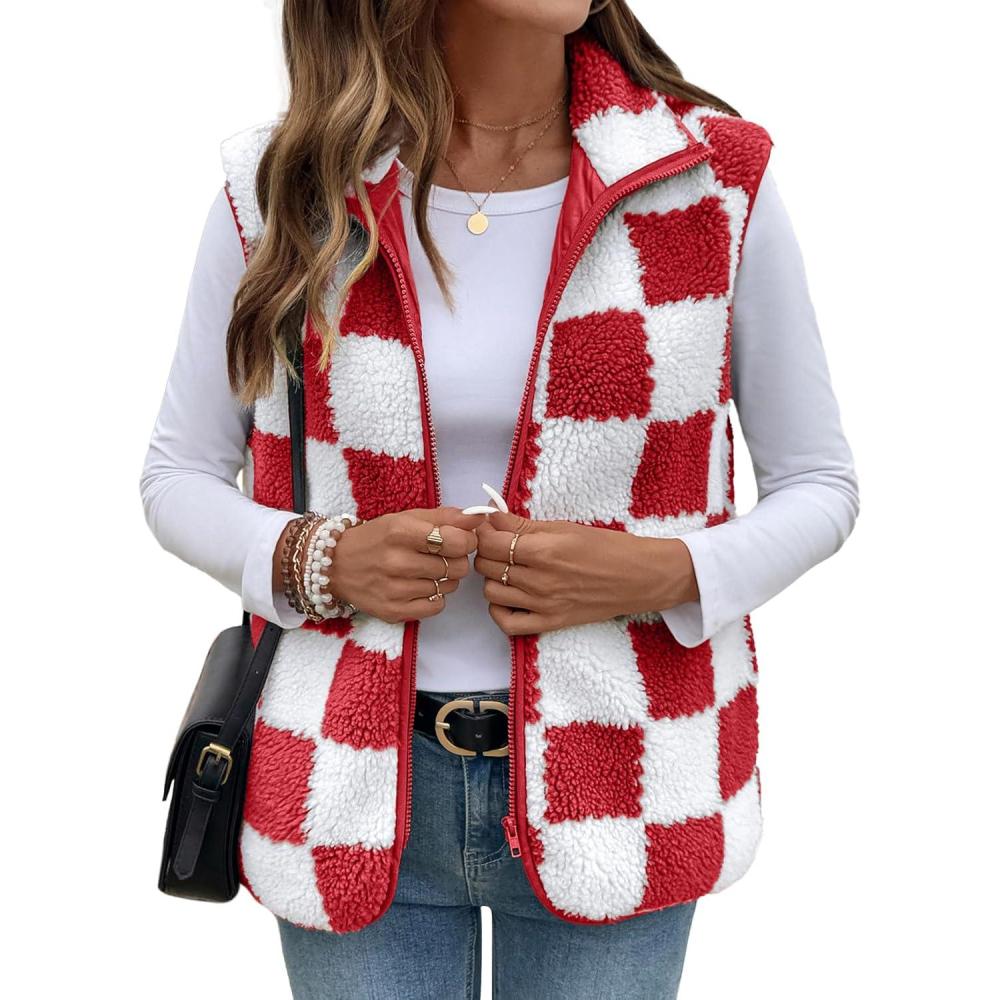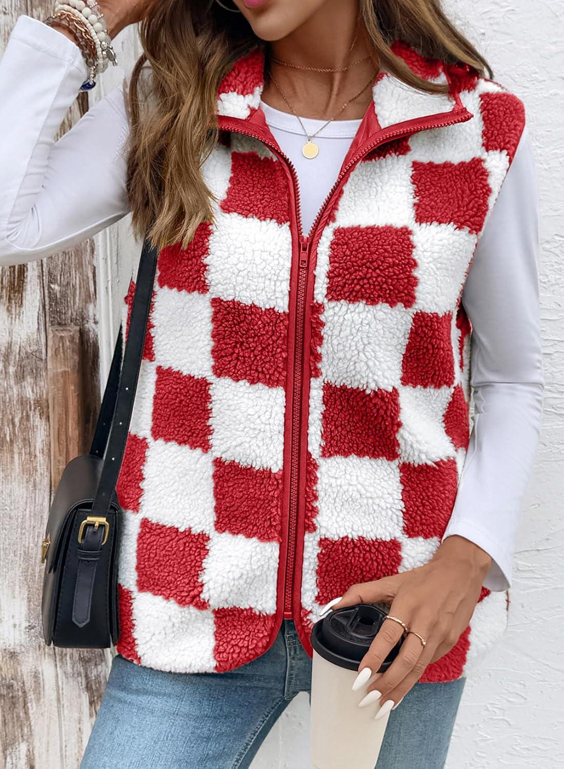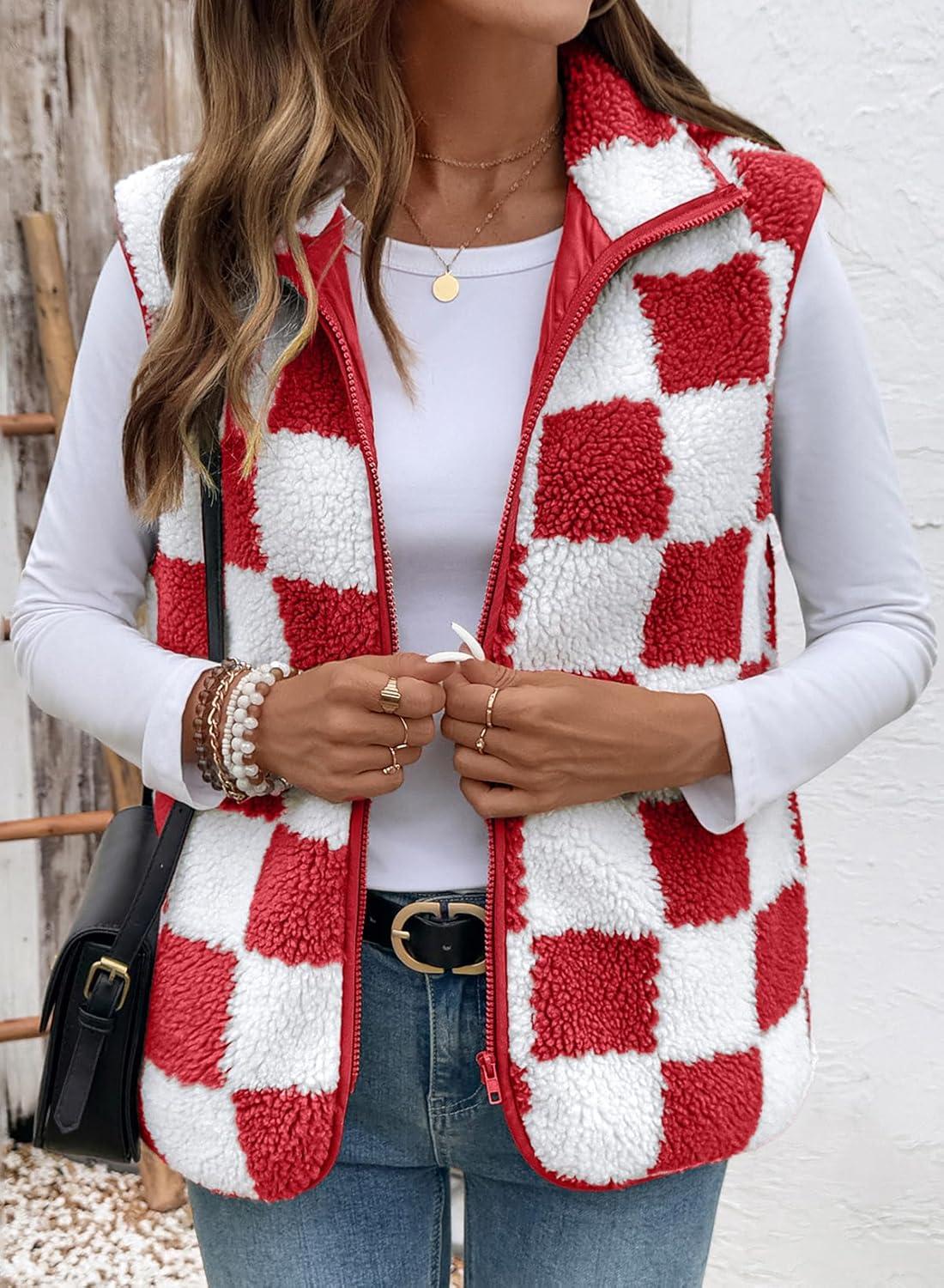 SHEWIN Womens Fleece Vest Casual Sleeveless Jacket Lightweight Outerwear Vests with Pockets Womens Fall Fashion 2025(Red)
