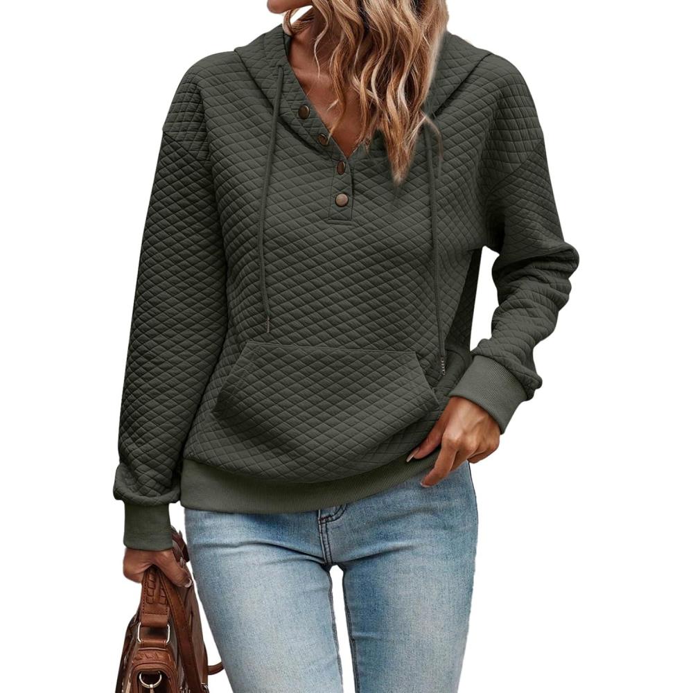 SHEWIN Women’s Hoodies Casual Long Sleeve Quilted Half Button Drop Shoulder Pullover Tops Loose Drawstring Hooded Sweatshirt(Green)
