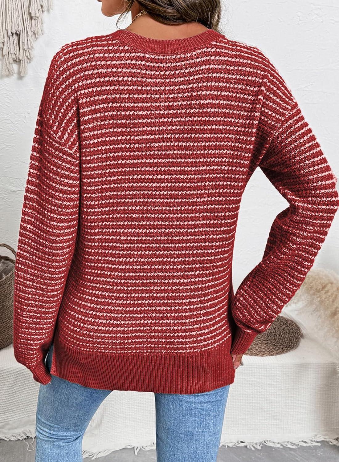 Be the first to review “SHEWIN Womens Long Sleeve Crewneck Sweaters Casual Knit Striped Side Split Pullover Sweater Tops(Red)”