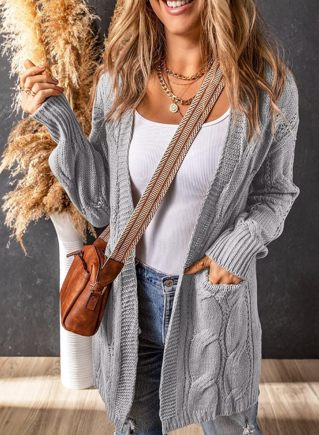 Don’t wait, get up to 50% off on SHEWIN Womens Open Front Long Sleeve Oversized Cardigan Sweaters Knit Coats with Pockrts(Gray) during our end-of-season sale event.