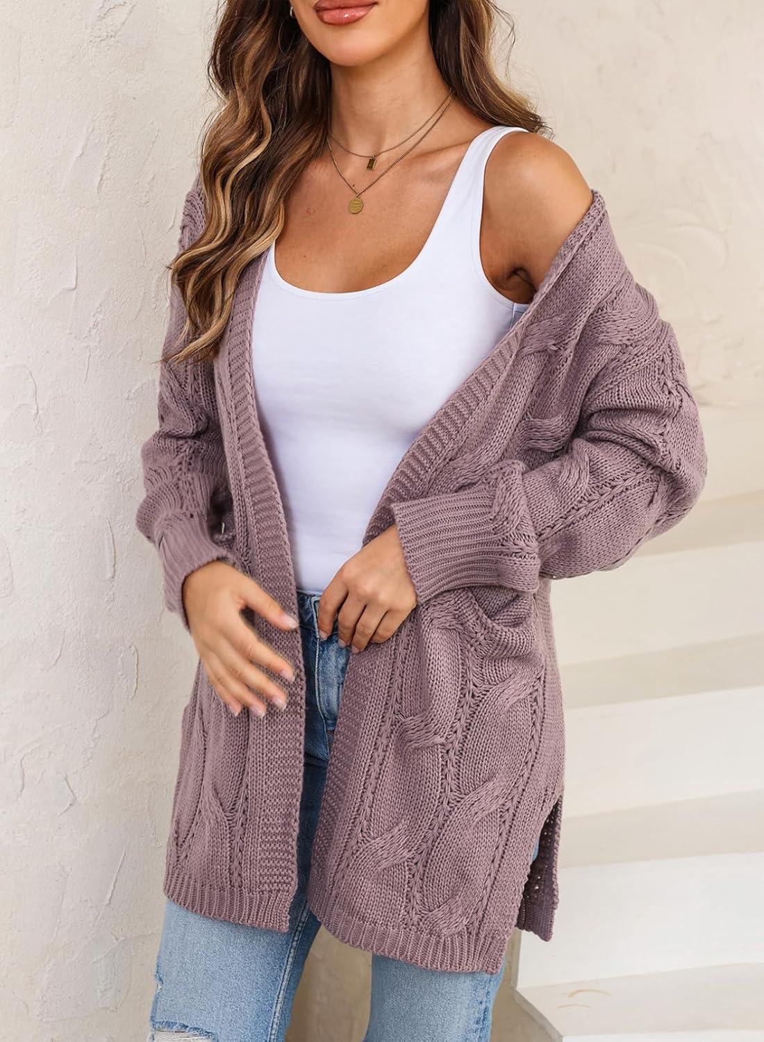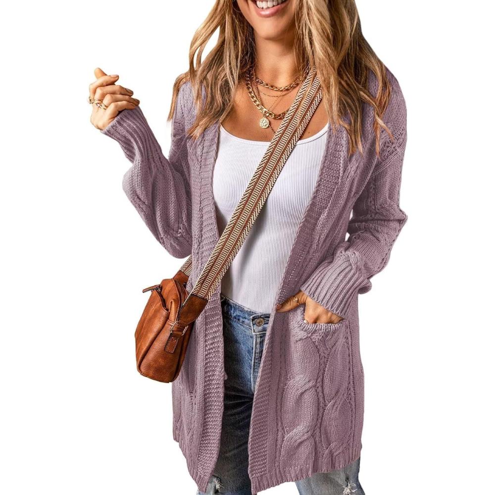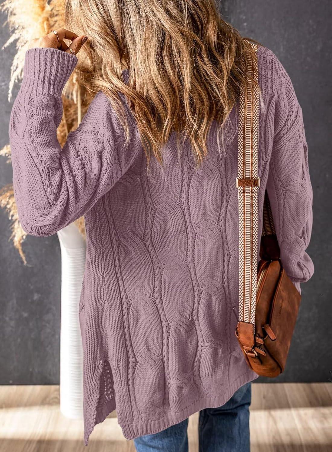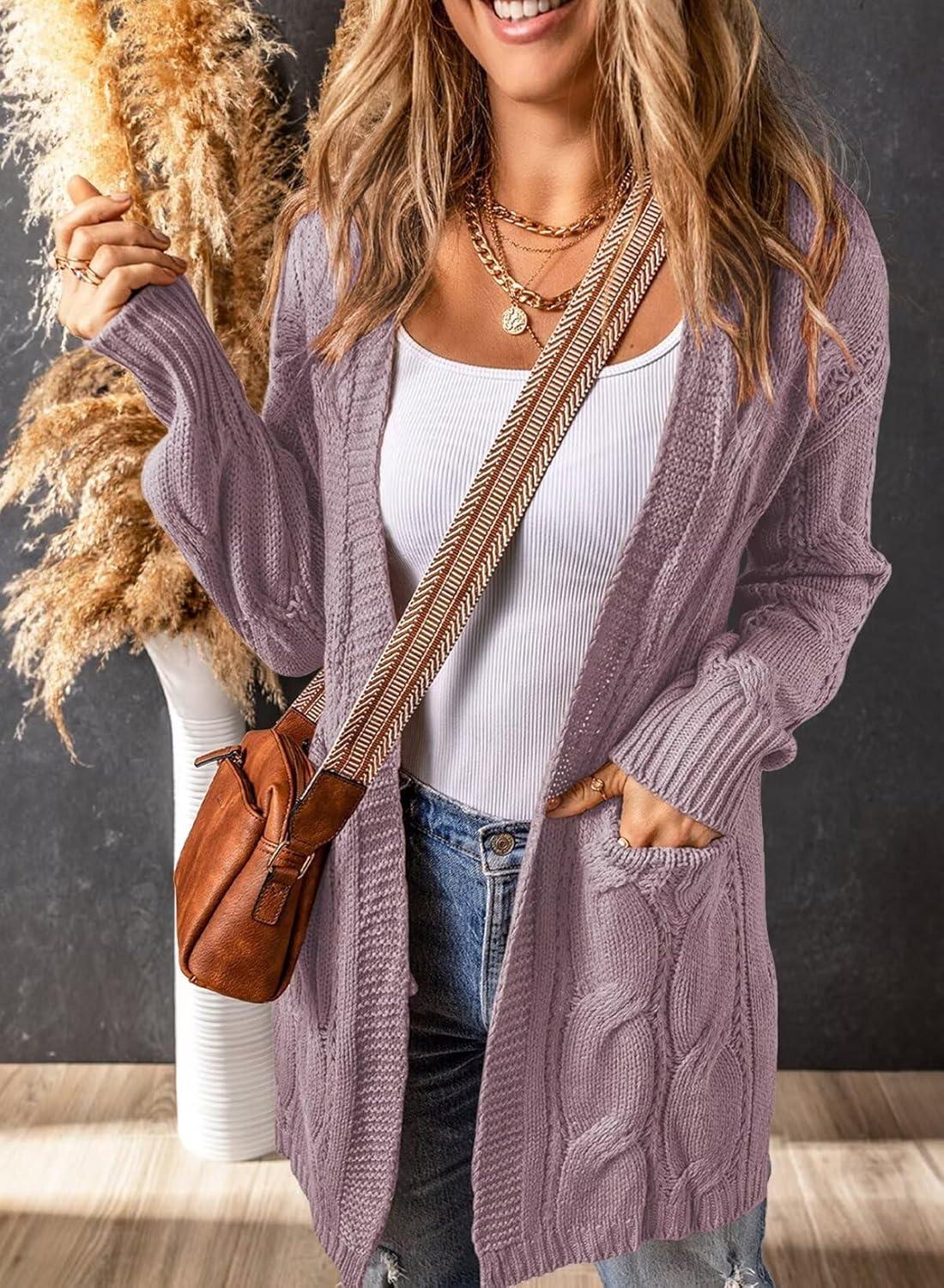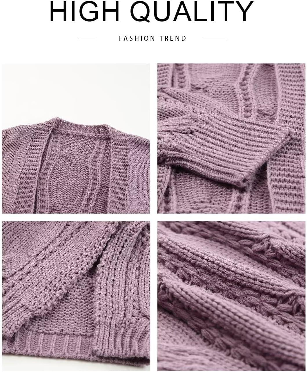 SHEWIN Womens Open Front Long Sleeve Oversized Cardigan Sweaters Knit Coats with Pockrts(Purple)