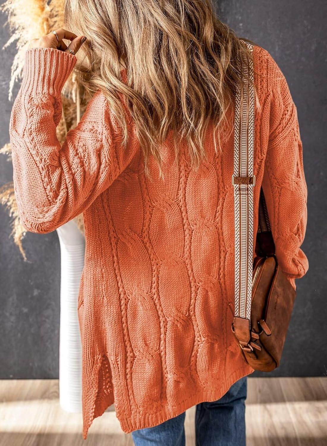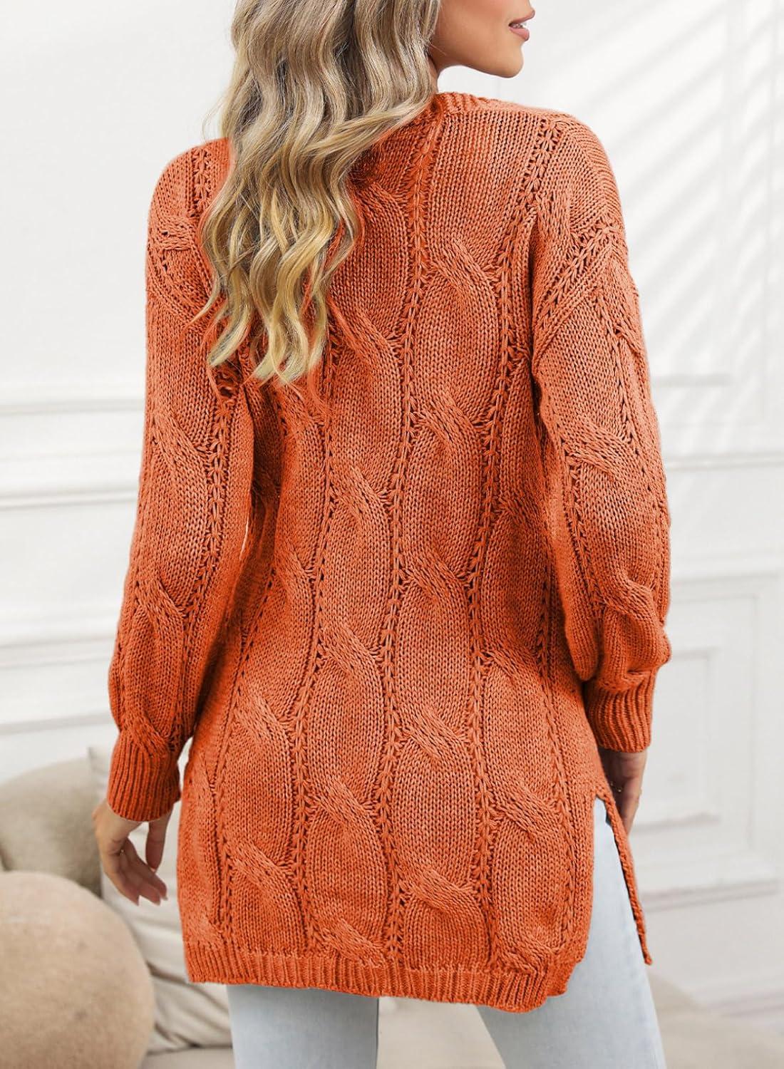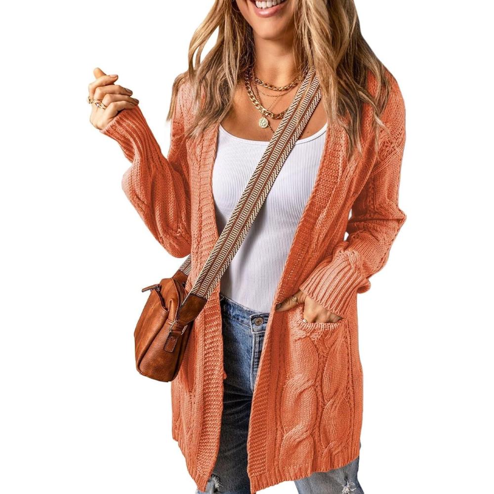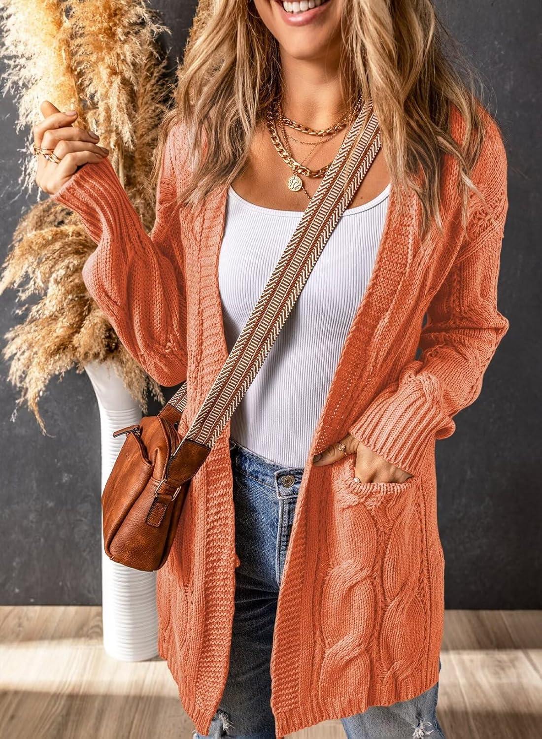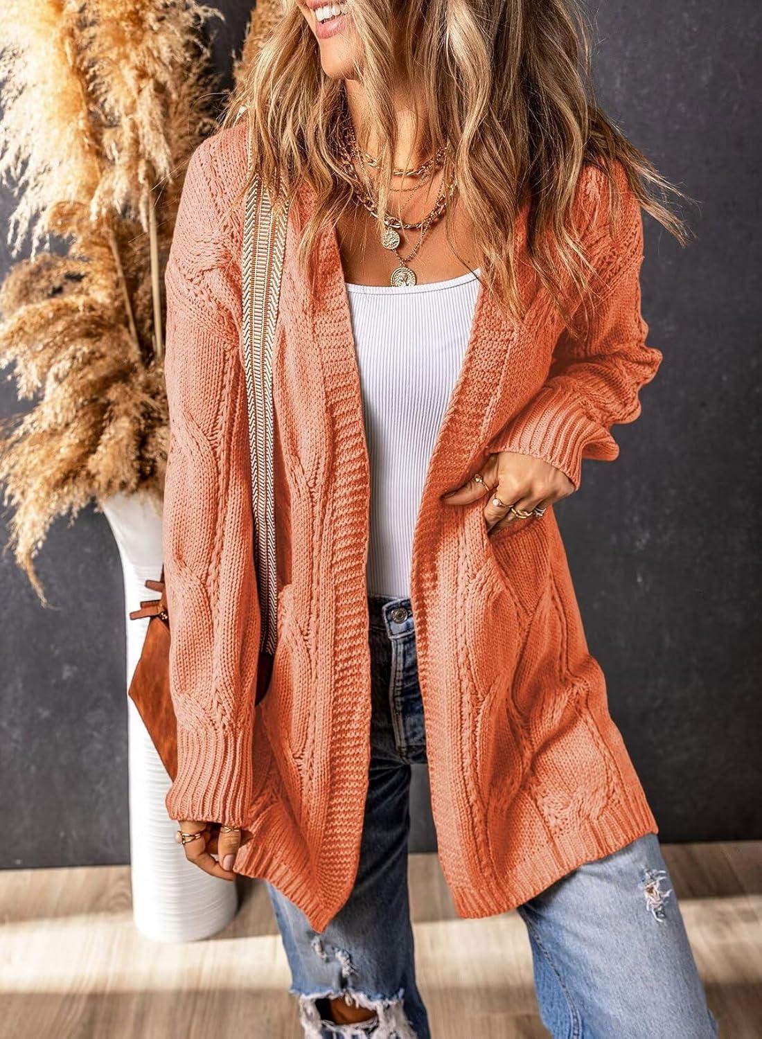 SHEWIN Womens Open Front Long Sleeve Oversized Cardigan Sweaters Knit Coats with Pockrts(Red)