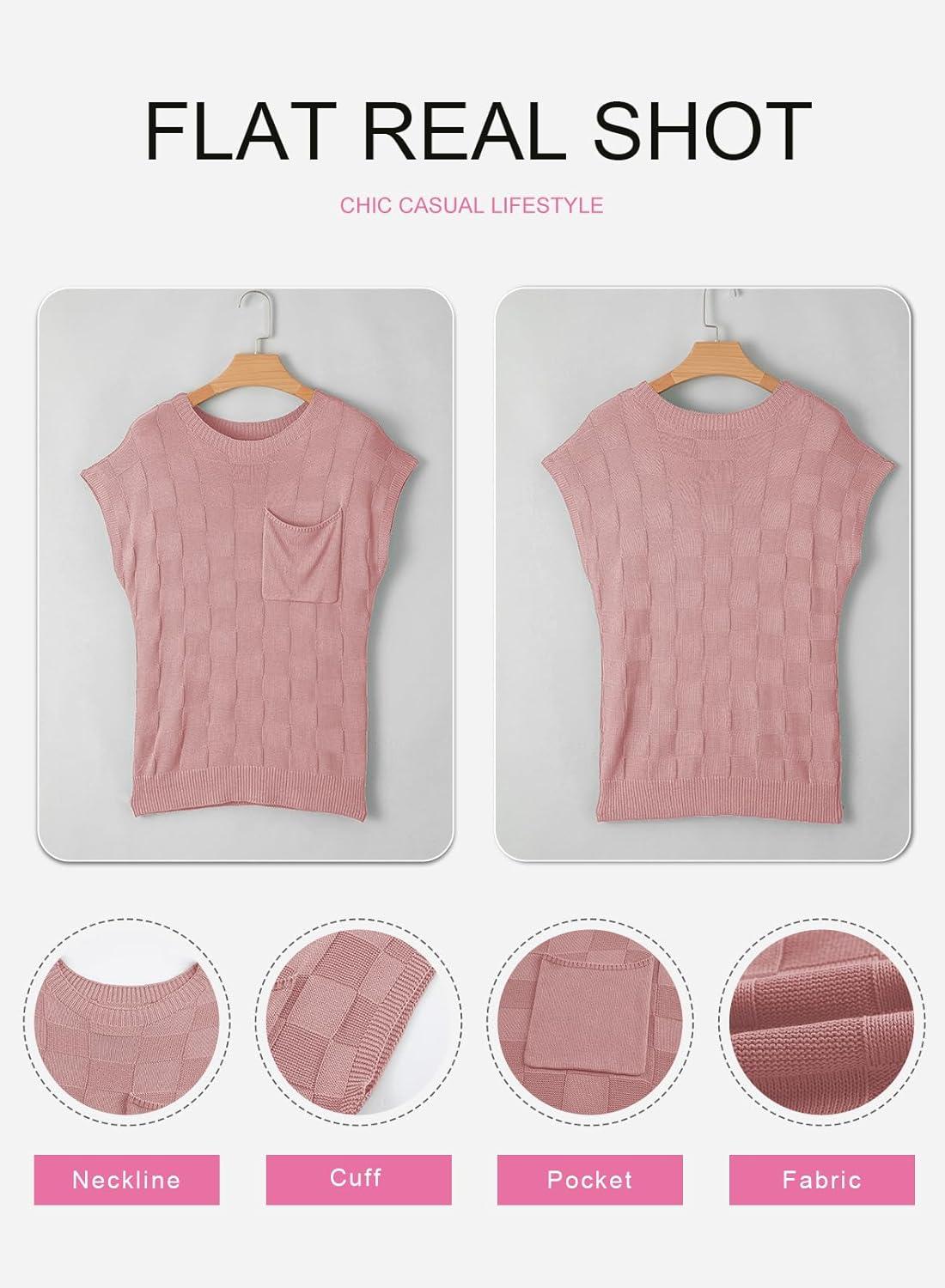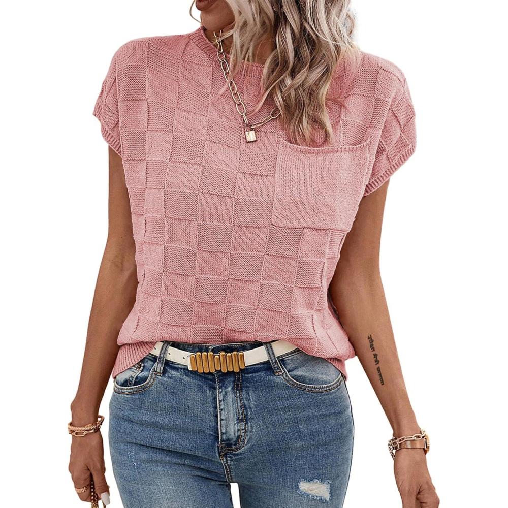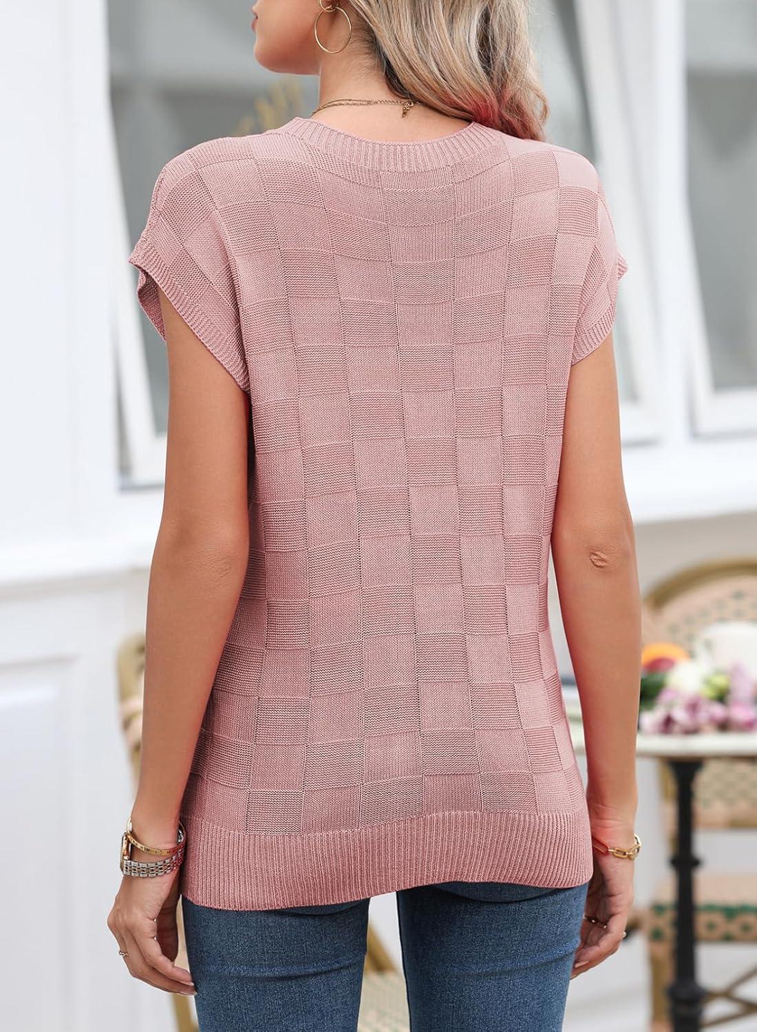 SHEWIN Womens Short Sleeve Sweater Casual Crewneck Summer Tops Lightweight Cap Sleeve Knit Sweater Vest Tops(Dusty Pink)