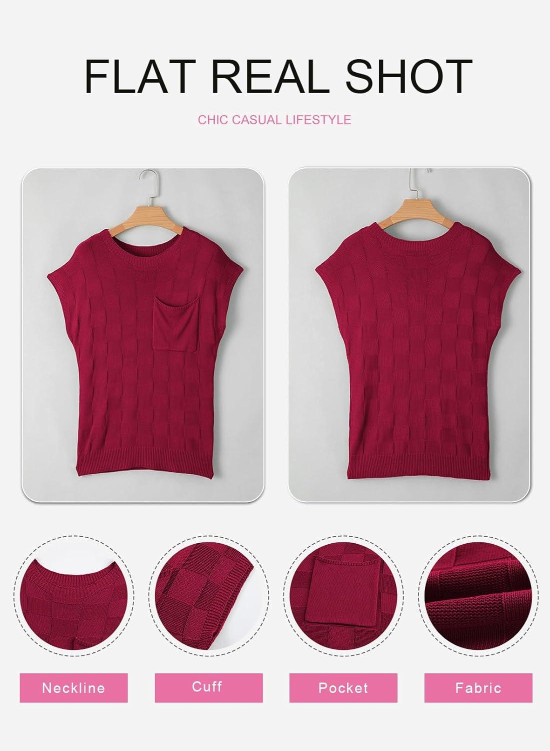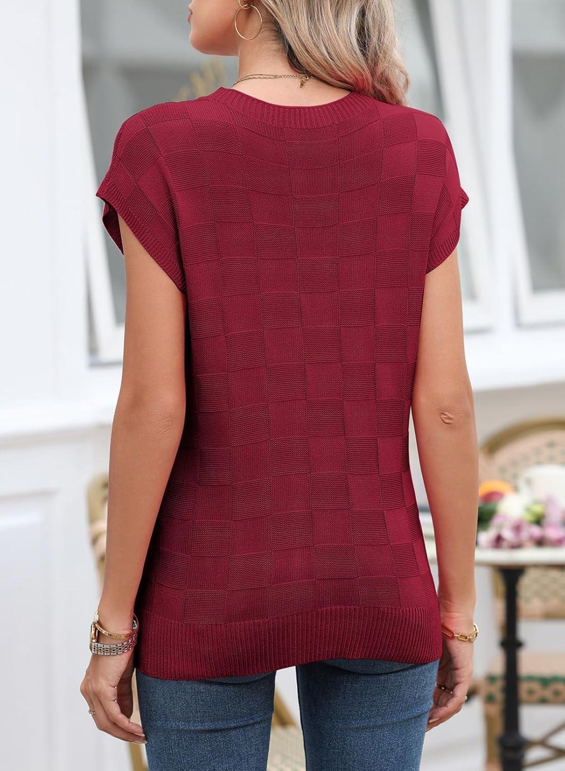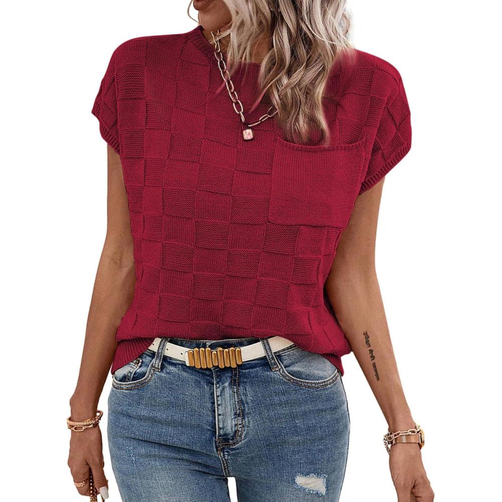 SHEWIN Womens Short Sleeve Sweater Casual Crewneck Summer Tops Lightweight Cap Sleeve Knit Sweater Vest Tops(Racing Red)