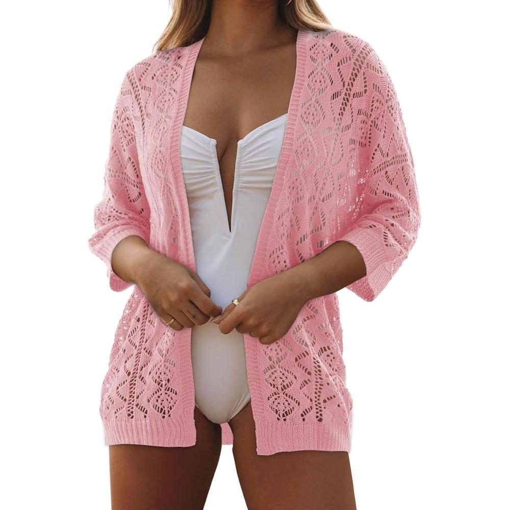 imageSHEWIN Women Open Front Knit Sweater Casual Long Sleeve V Neck Cardigan Fall 2025Beige