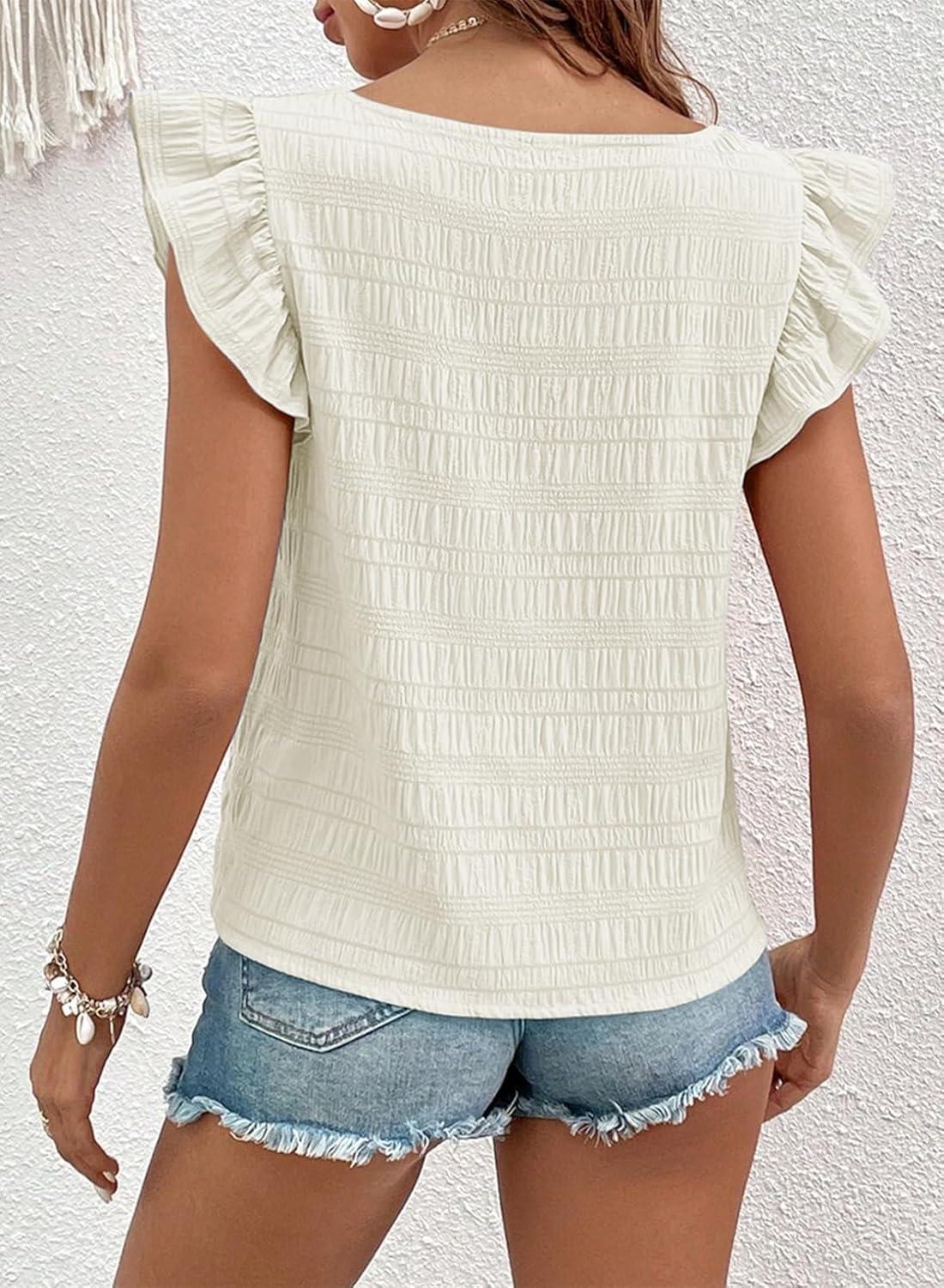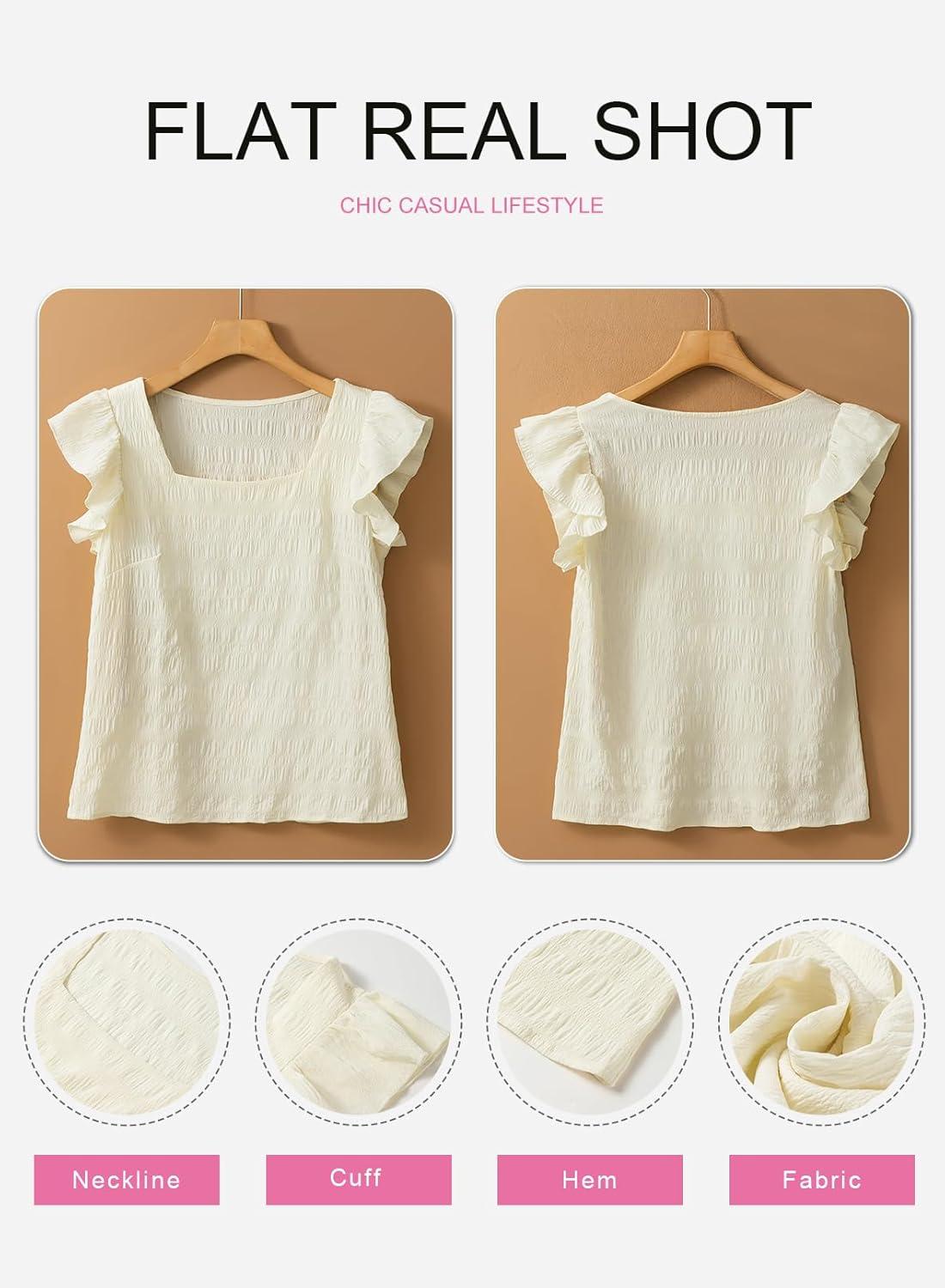 imageSHEWIN Womens Casual Summer Square Neck Tank Tops Sleeveless Ruffle Chiffon Blouses Top ShirtsOrange