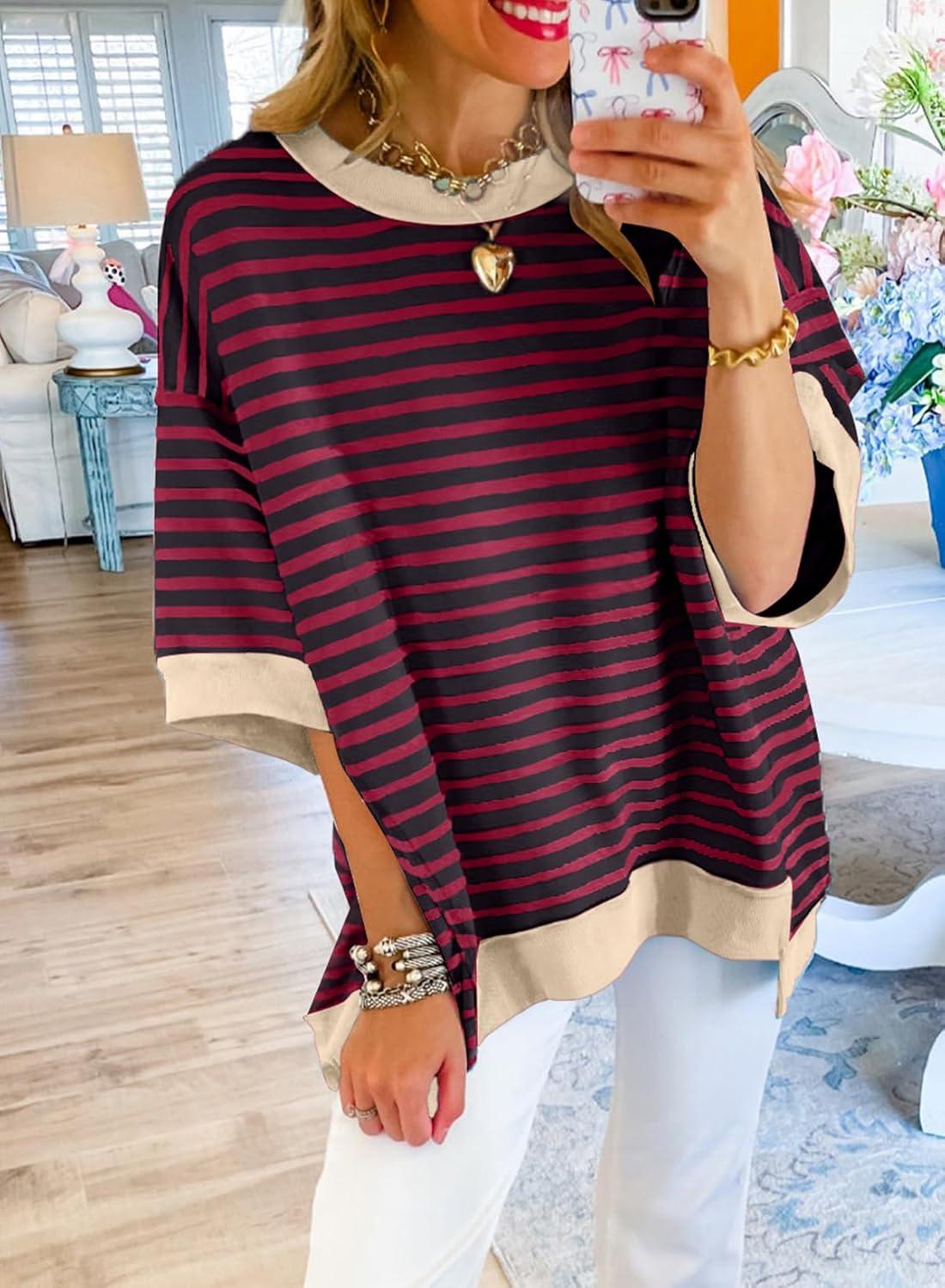 SHEWIN womens Soft(Red Dahlia Stripe)