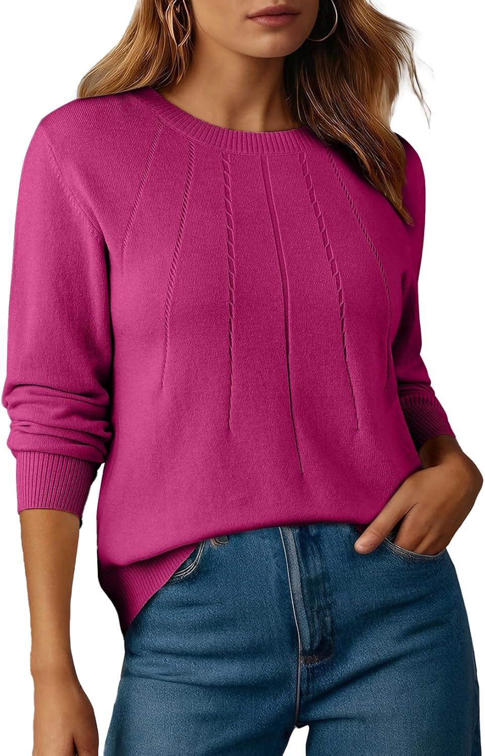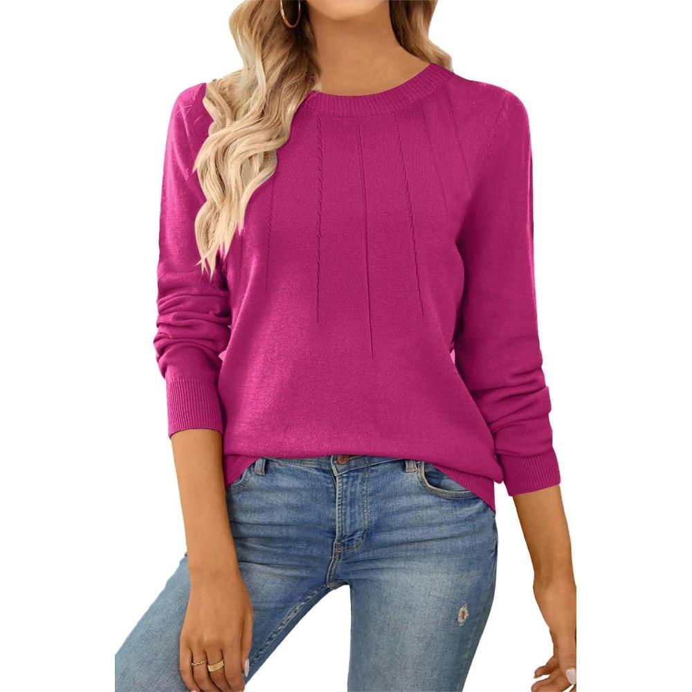 SHEWIN Womens Sweaters 2025 Casual Crewneck Long Sleeve Lightweight Knit Pullover Sweater Tops Fall Clothes(Hot Pink)