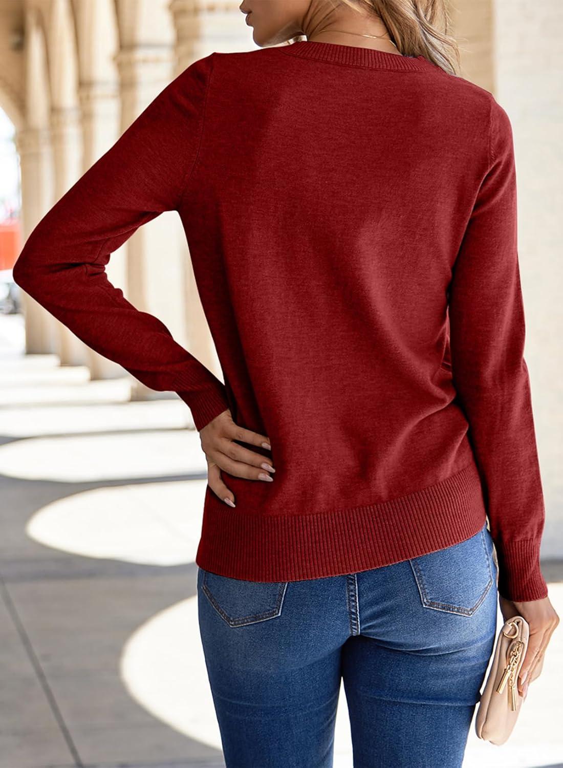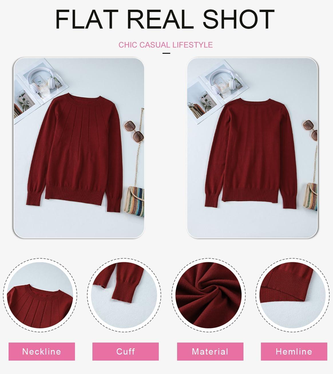 SHEWIN Womens Sweaters 2025 Casual Crewneck Long Sleeve Lightweight Knit Pullover Sweater Tops Fall Clothes(Red)