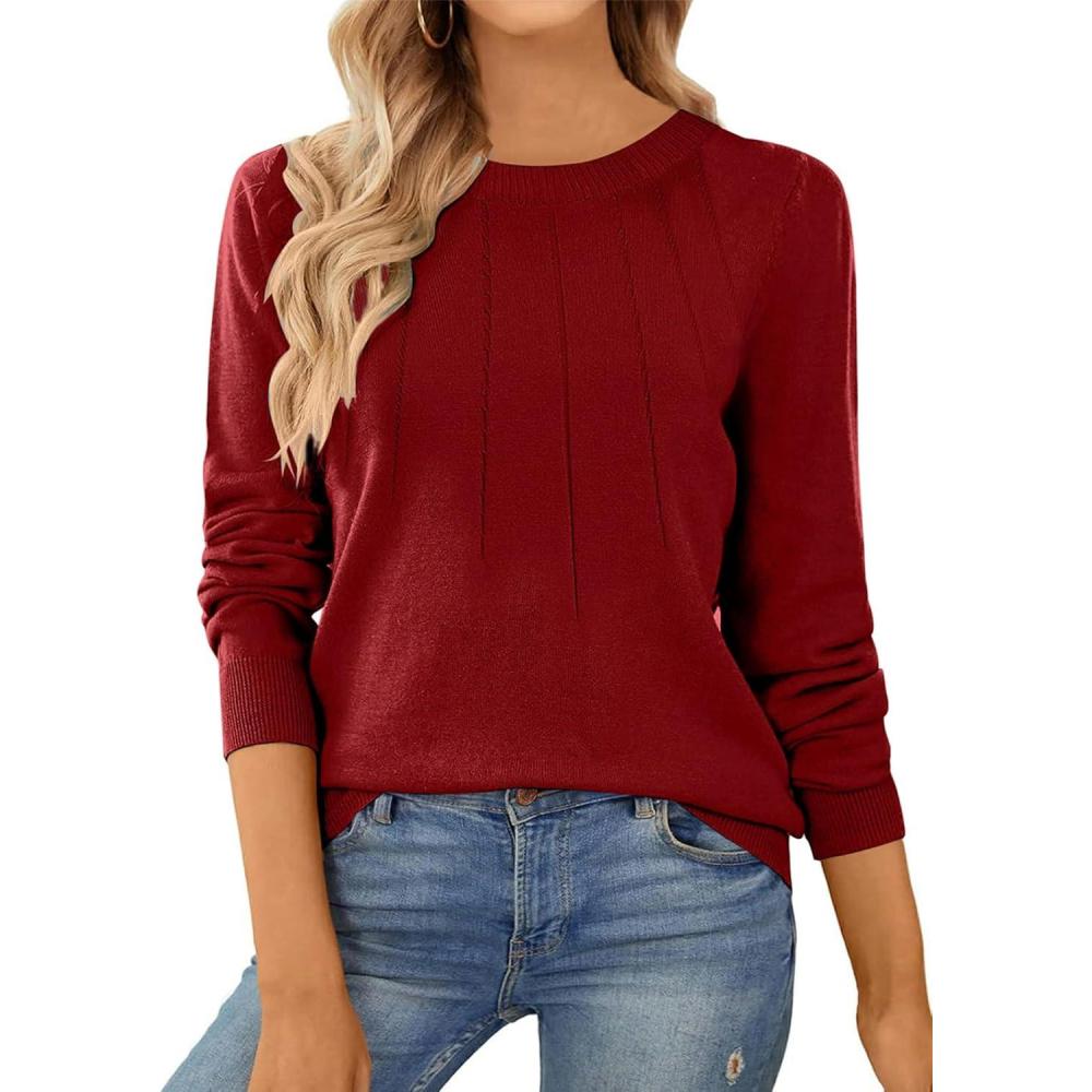Save up to 40% on SHEWIN Womens Sweaters 2025 Casual Crewneck Long Sleeve Lightweight Knit Pullover Sweater Tops Fall Clothes(Red) styles during our end-of-season sale.