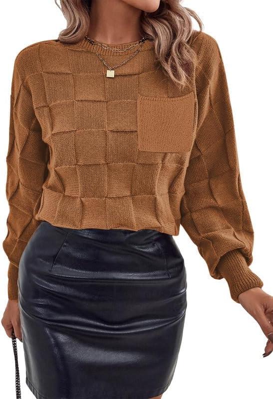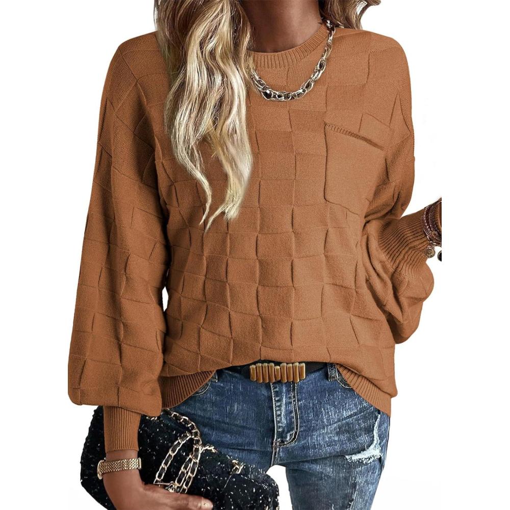 SHEWIN Womens Sweaters 2025 Casual Crewneck Long Sleeve Lightweight Knit Pullover Sweater Tops(Brown)