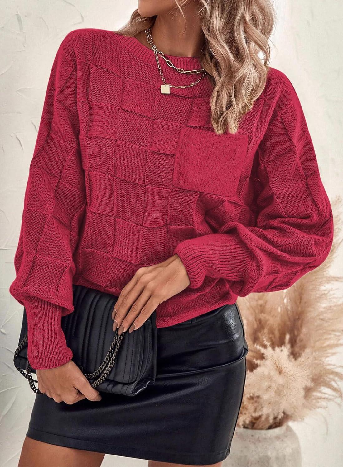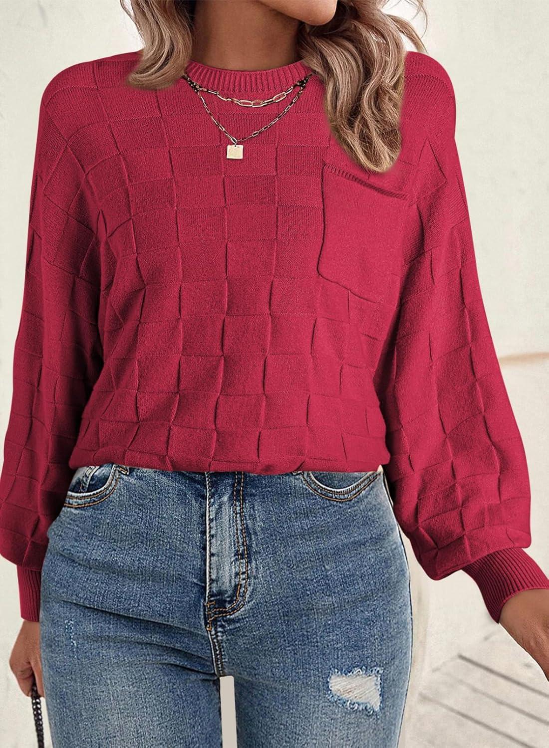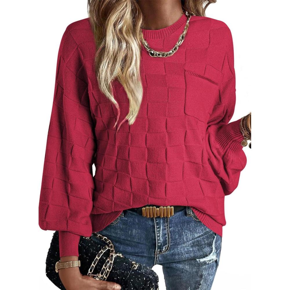 SHEWIN Womens Sweaters 2025 Casual Crewneck Long Sleeve Lightweight Knit Pullover Sweater Tops(Red)