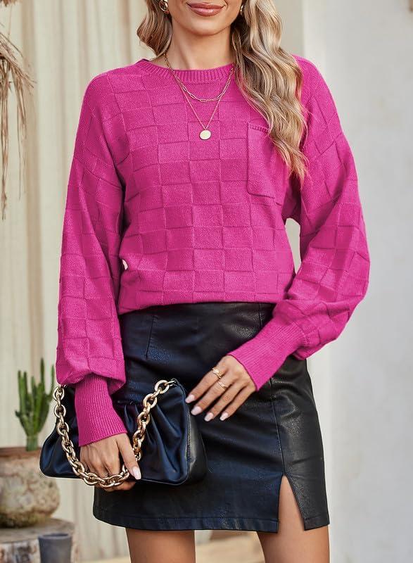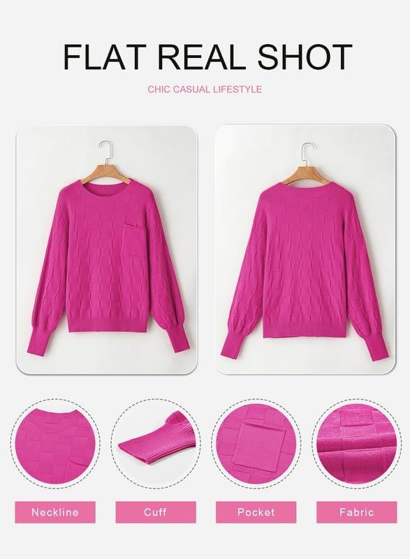 SHEWIN Womens Sweaters 2025 Casual Crewneck Long Sleeve Lightweight Knit Pullover Sweater Tops(Rose Red)