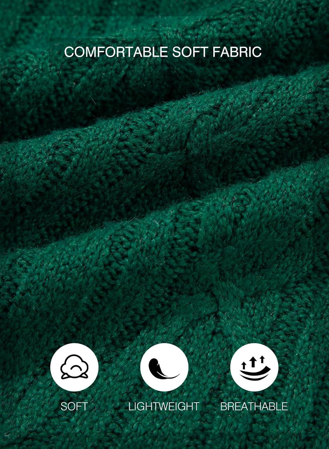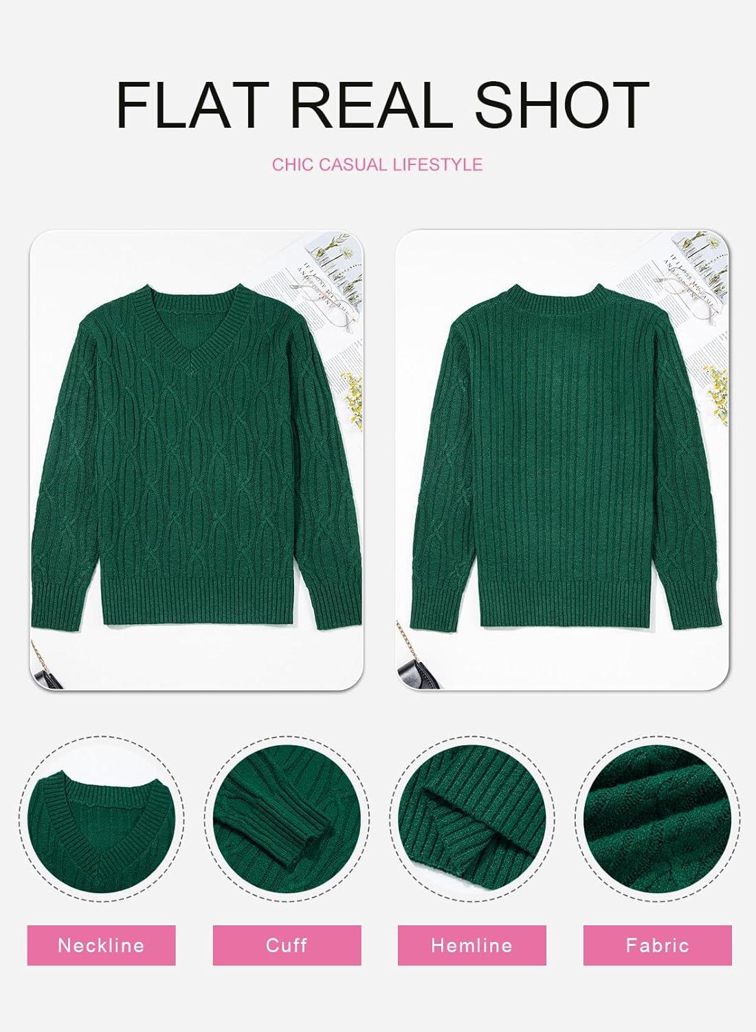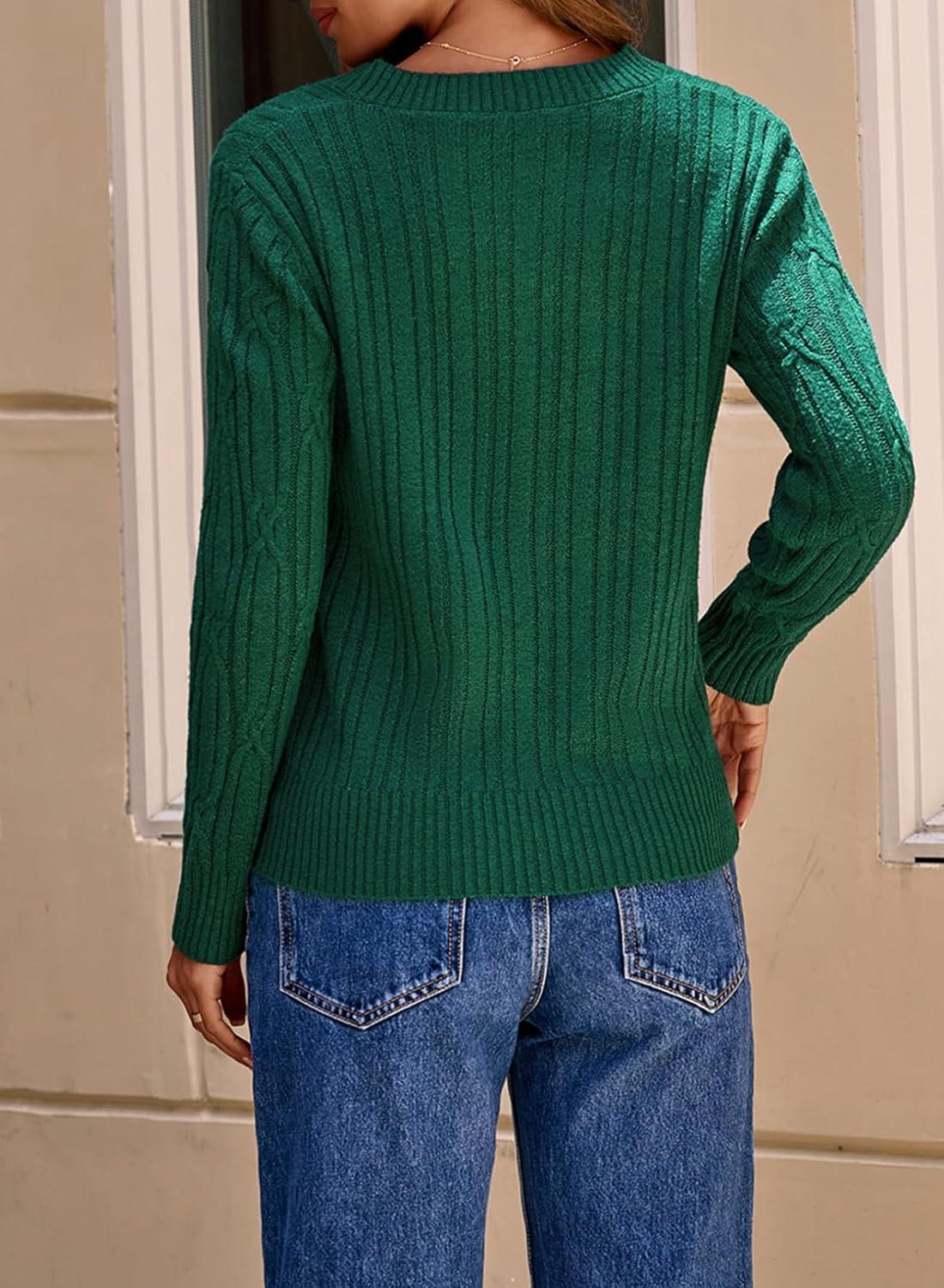 SHEWIN Womens Sweaters Casual V Neck Long Sleeve Cable Knit Crochet Sweater Fall Outfits for Women 2025(Green)