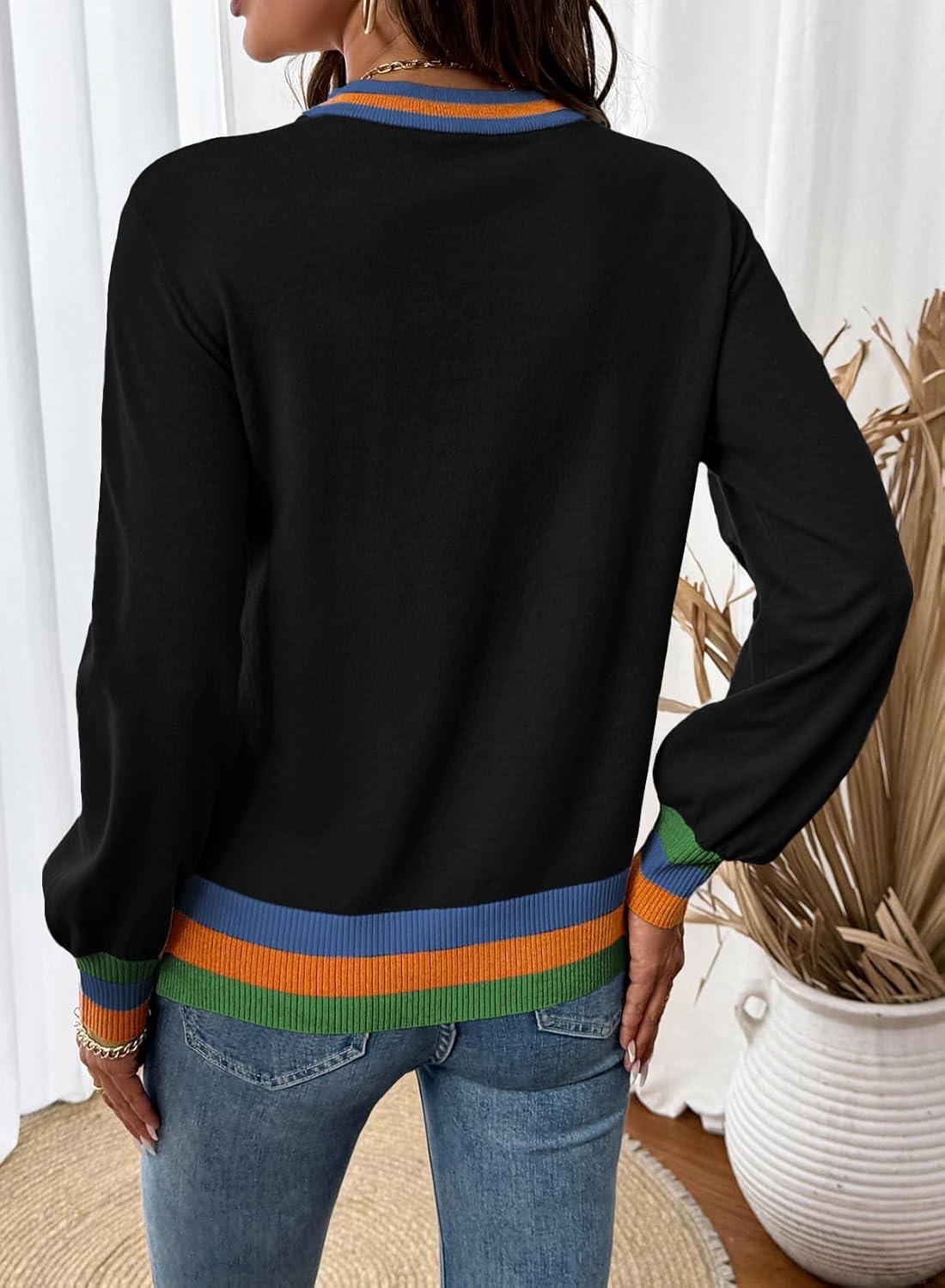 SHEWIN Womens Sweaters Crew Neck Long Sleeve Tops Knit Color Clock Fall Outfits for Women 2025(Black)