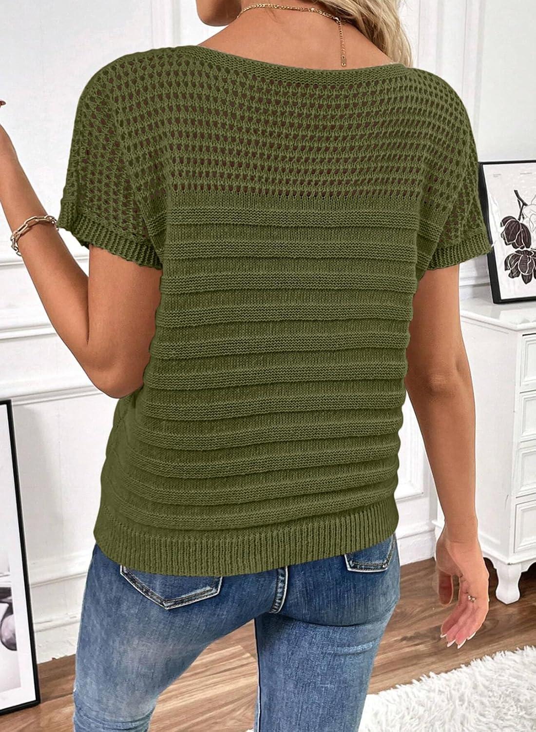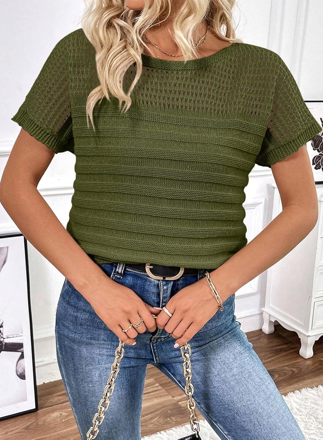 SHEWIN Womens Sweaters Crew Neck Short Sleeve Shirts Summer Tops Knit Hollow Out T Shirts Sweater Blouses(Green)