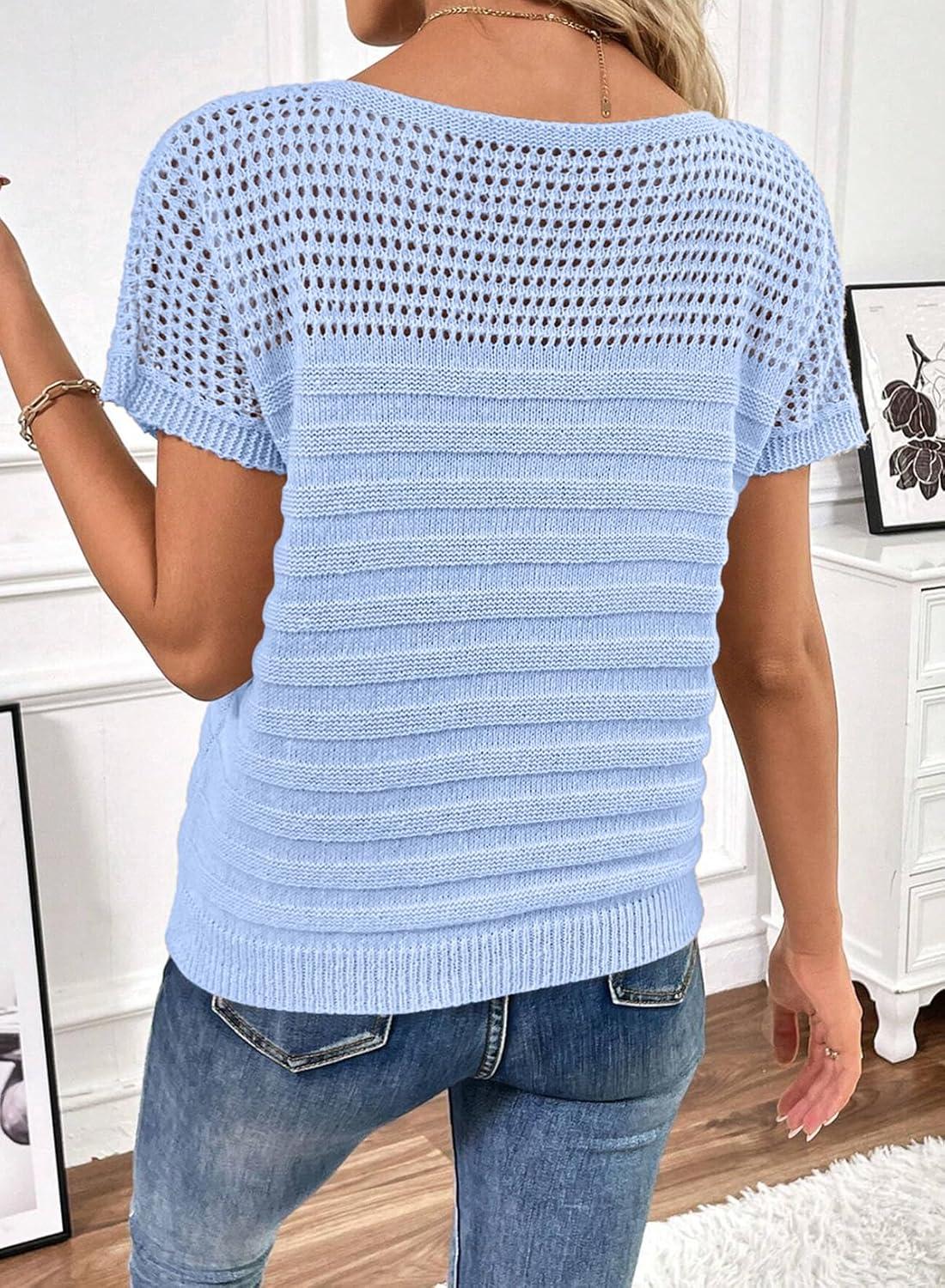 SHEWIN Womens Sweaters Crew Neck Short Sleeve Shirts Summer Tops Knit Hollow Out T Shirts Sweater Blouses(Myosotis)