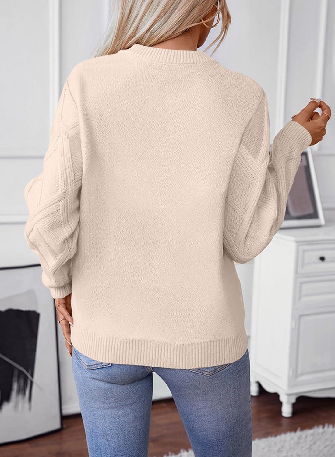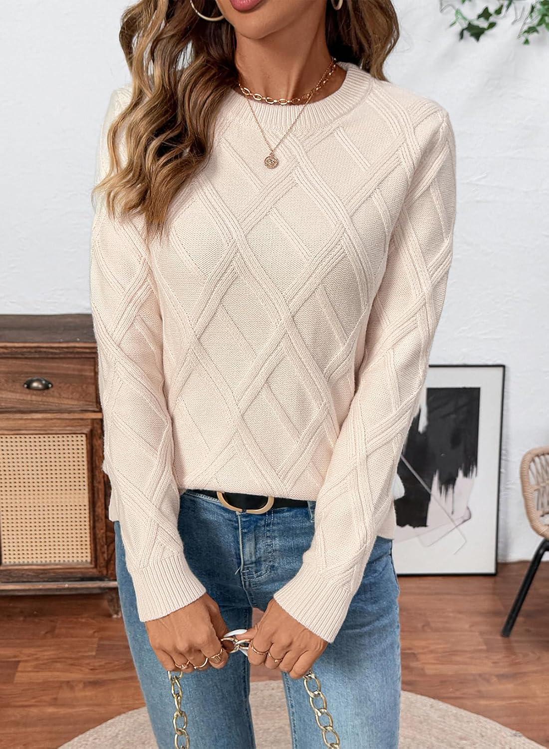 SHEWIN Womens Sweaters Crewneck Cable Knit Sweater Long Sleeve Fall Tops for Women 2025(Beige)