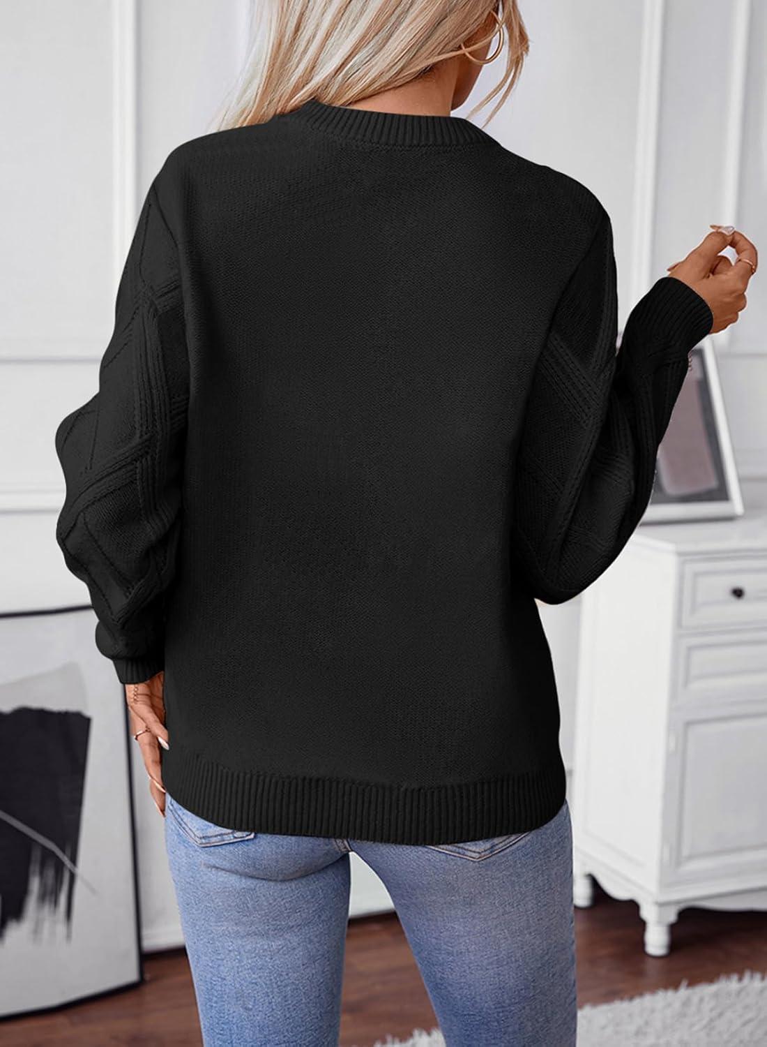 SHEWIN Womens Sweaters Crewneck Cable Knit Sweater Long Sleeve Fall Tops for Women 2025(Black)