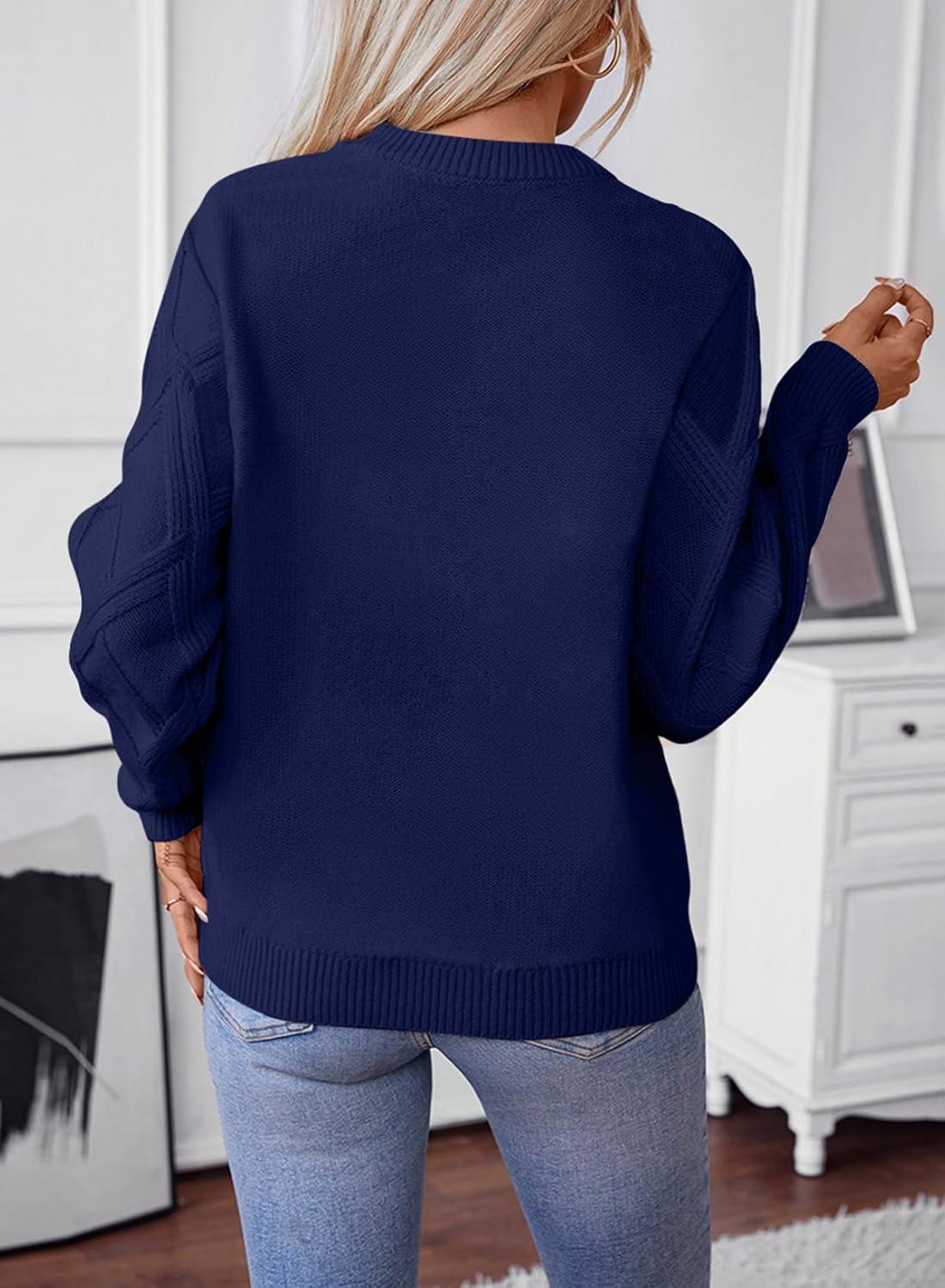 SHEWIN Womens Sweaters Crewneck Cable Knit Sweater Long Sleeve Fall Tops for Women 2025(Blue)