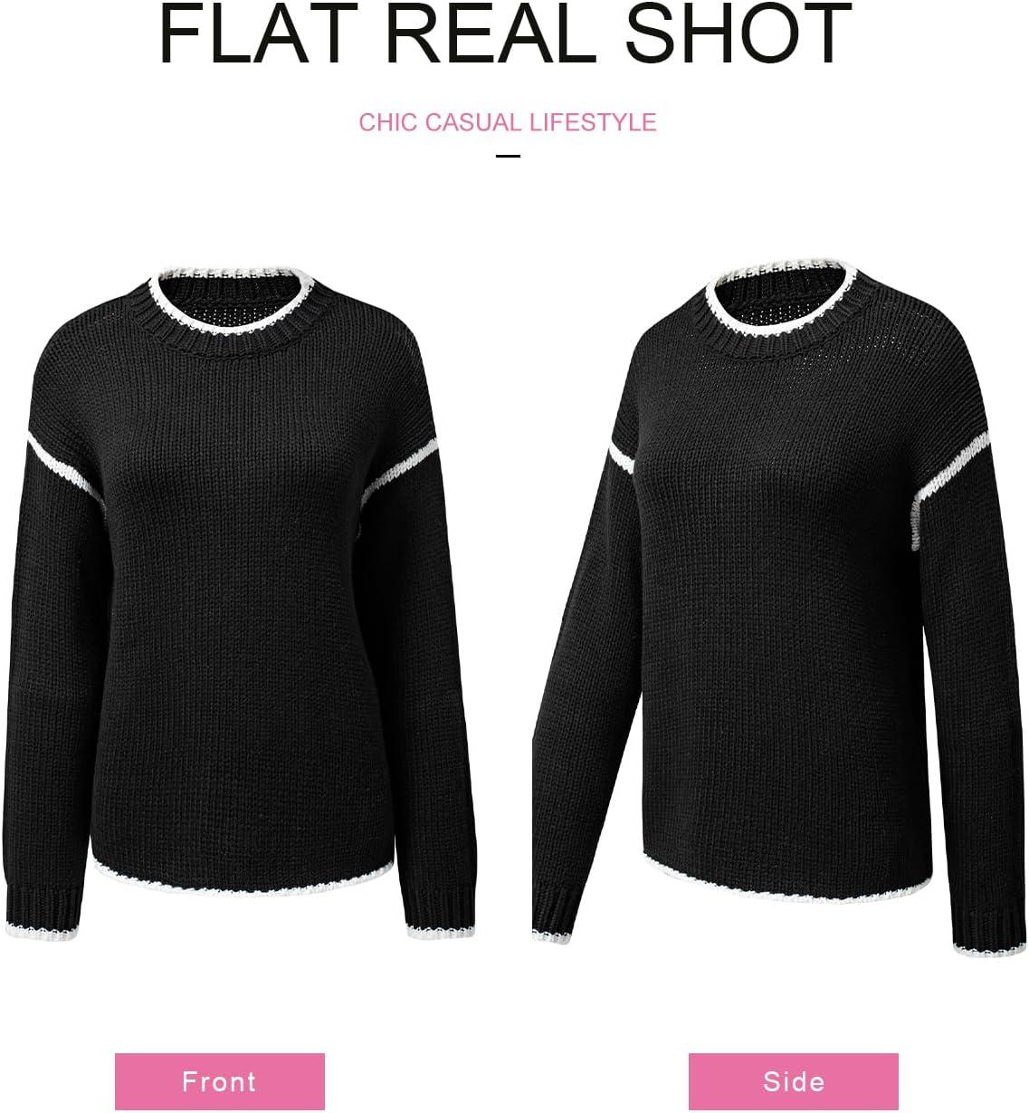 SHEWIN Womens Sweaters Crewneck Long Sleeve Knit Pullover Sweater Casual Fall Tops for Women 2025(Black)
