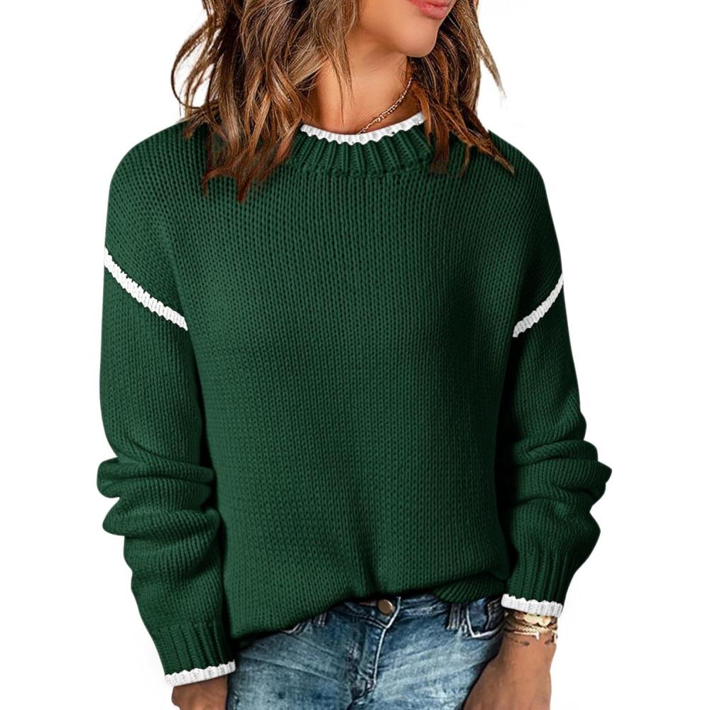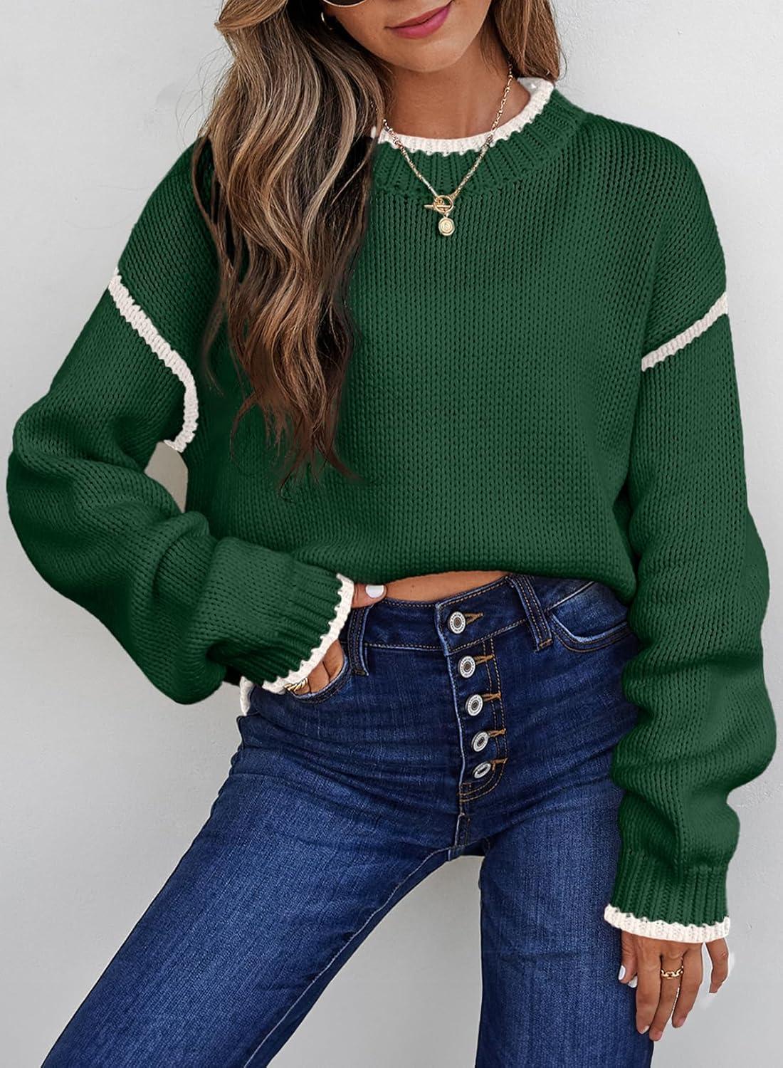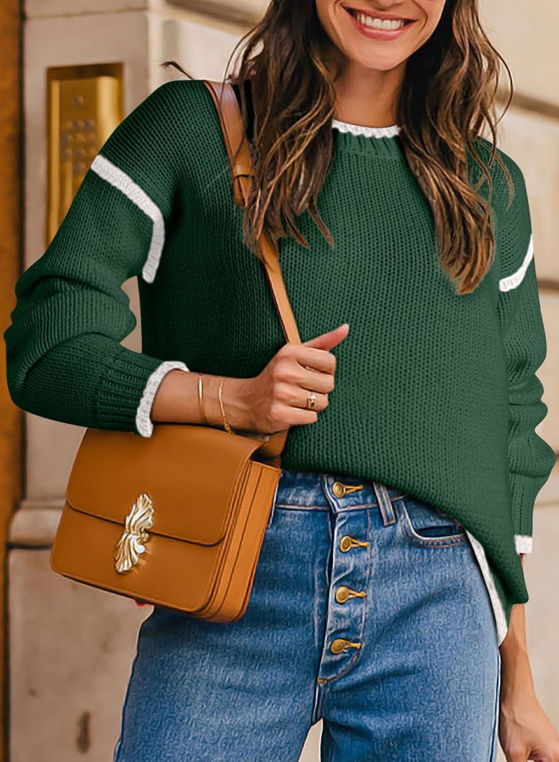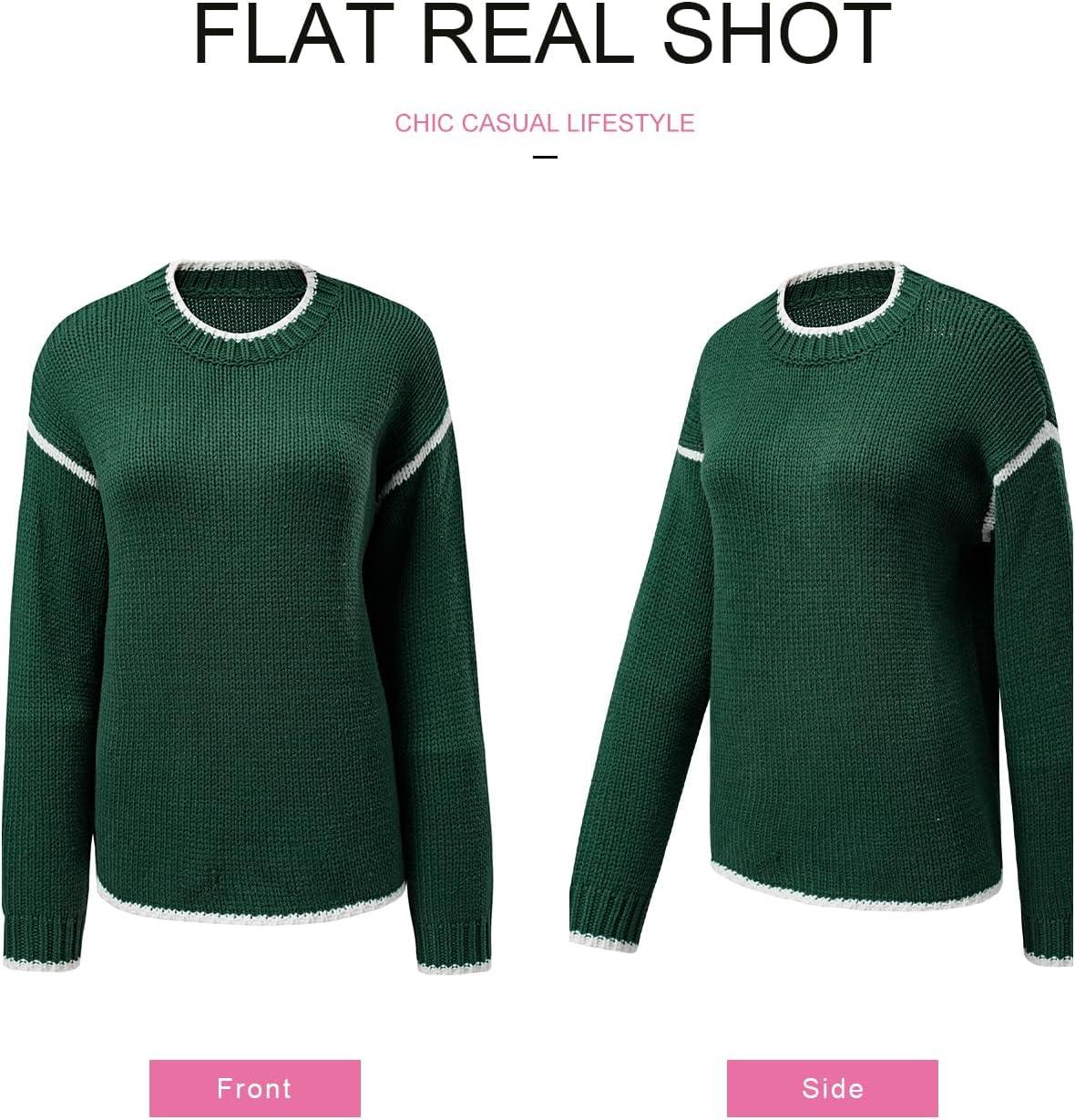 SHEWIN Womens Sweaters Crewneck Long Sleeve Knit Pullover Sweater Casual Fall Tops for Women 2025(Blackish Green)