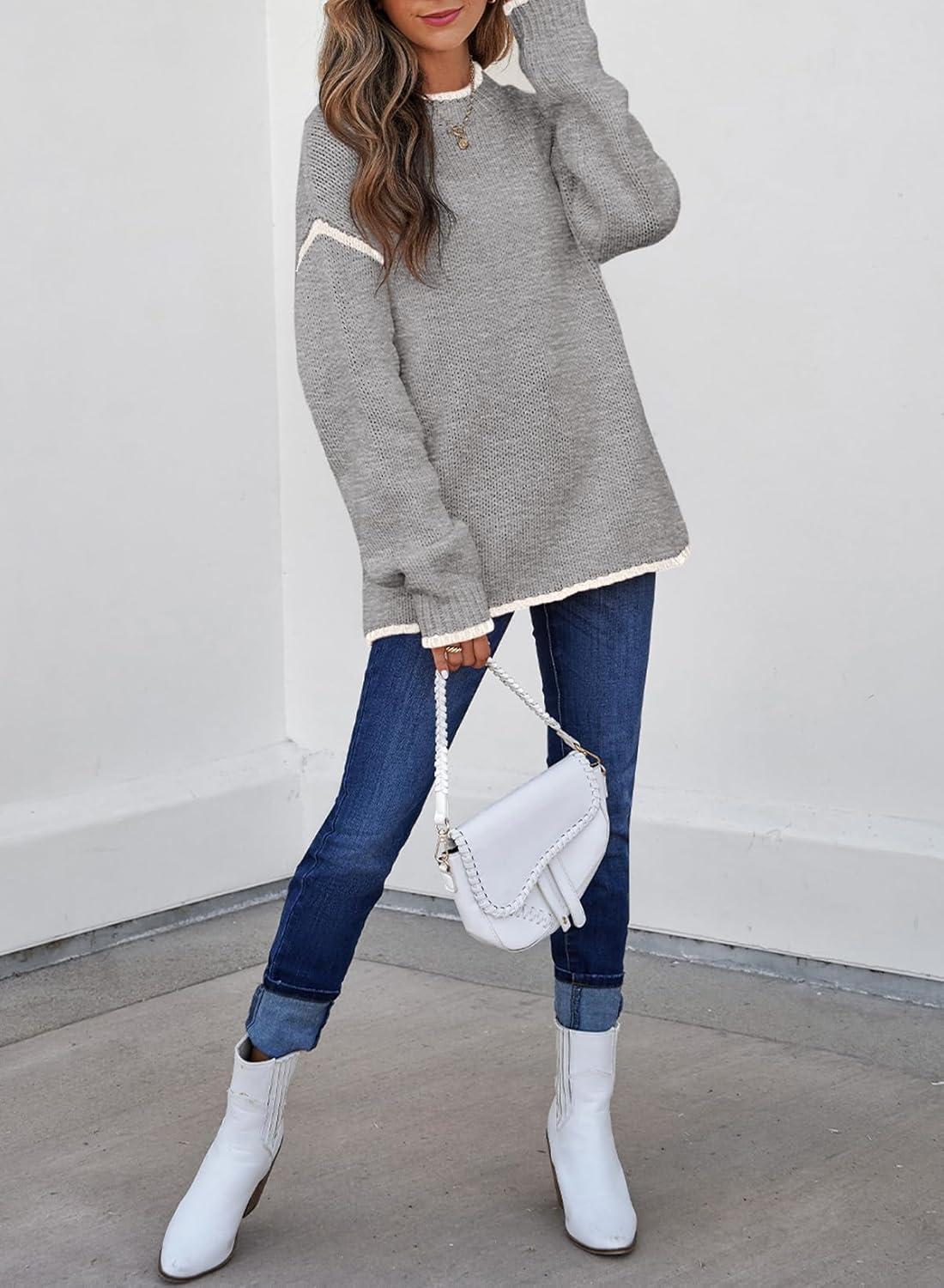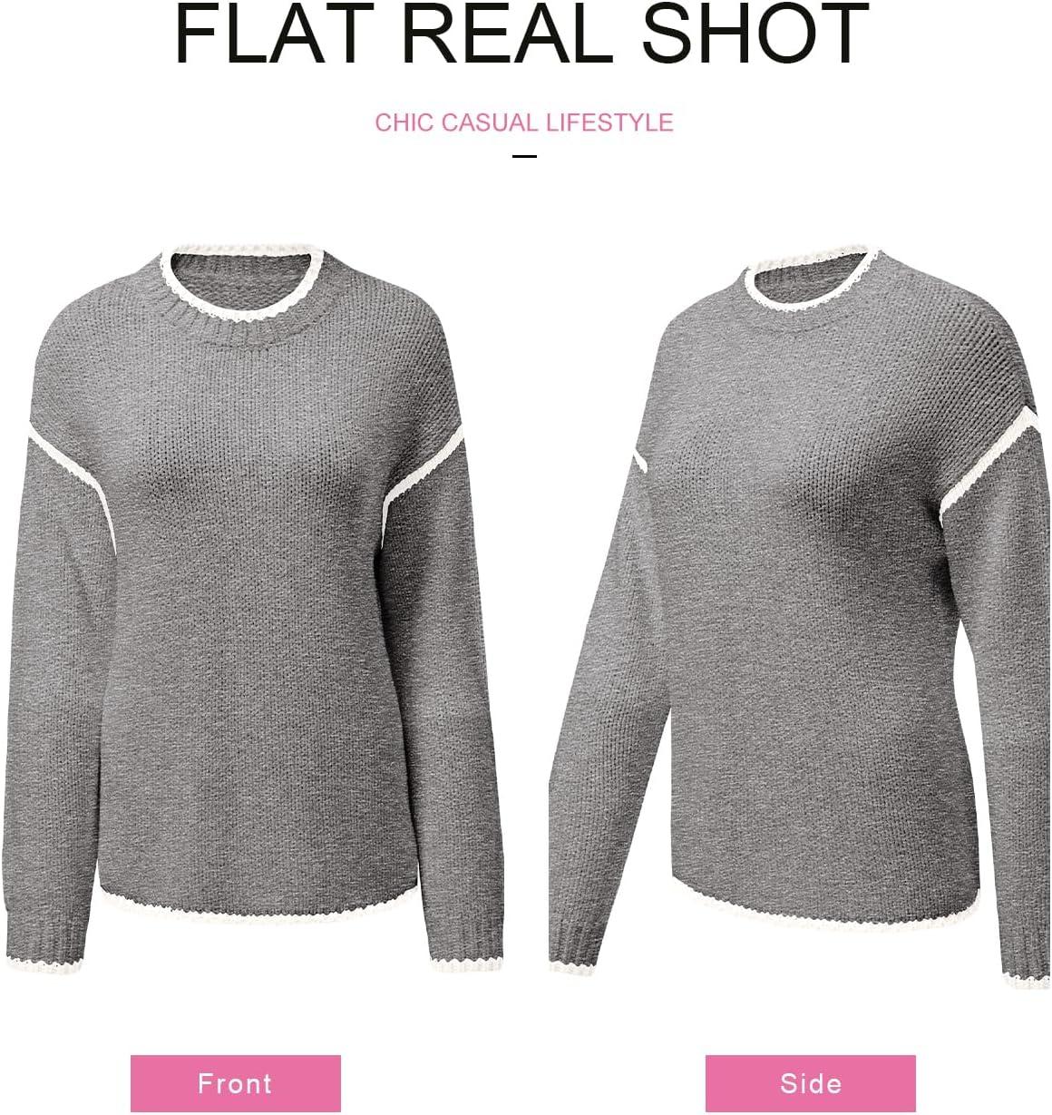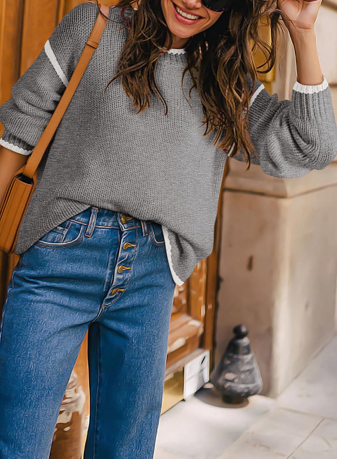 SHEWIN Womens Sweaters Crewneck Long Sleeve Knit Pullover Sweater Casual Fall Tops for Women 2025(Grey)