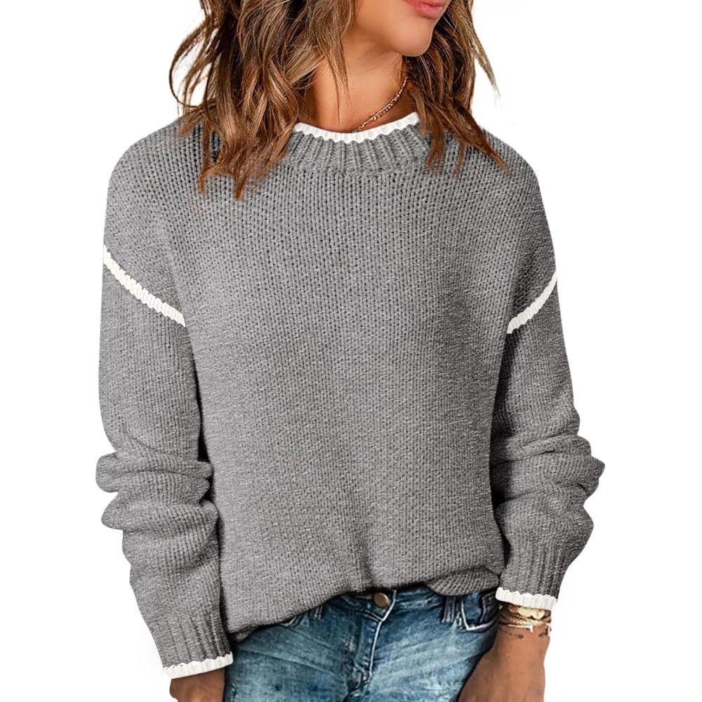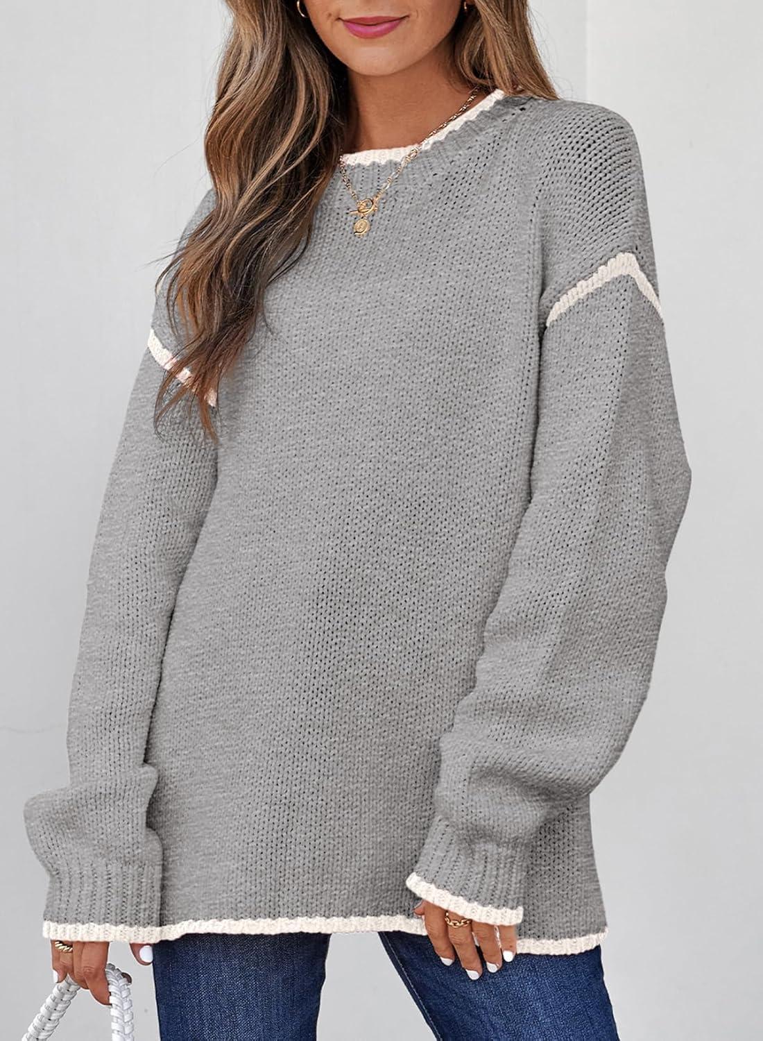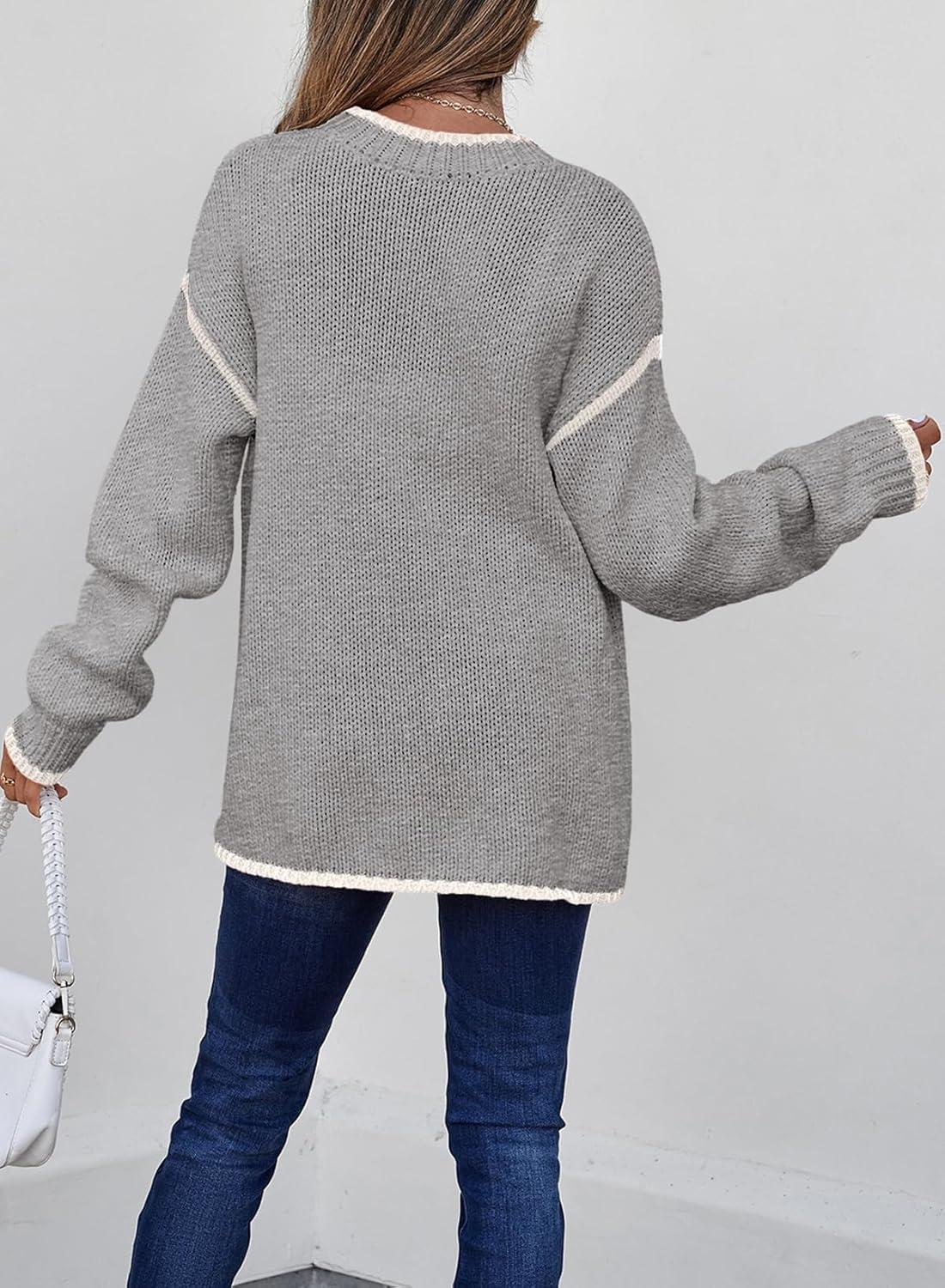 SHEWIN Womens Sweaters Crewneck Long Sleeve Knit Pullover Sweater Casual Fall Tops for Women 2025(Grey)