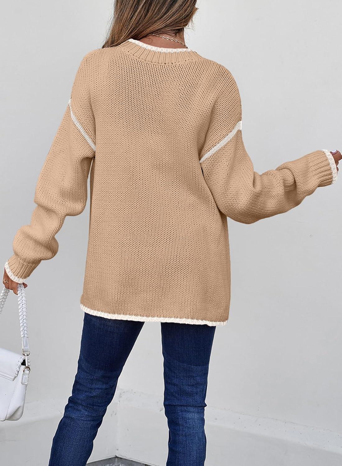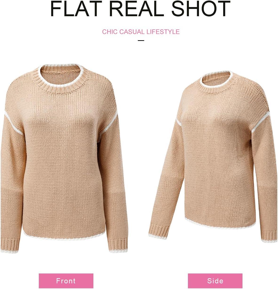 SHEWIN Womens Sweaters Crewneck Long Sleeve Knit Pullover Sweater Casual Fall Tops for Women 2025(Pale Khaki)