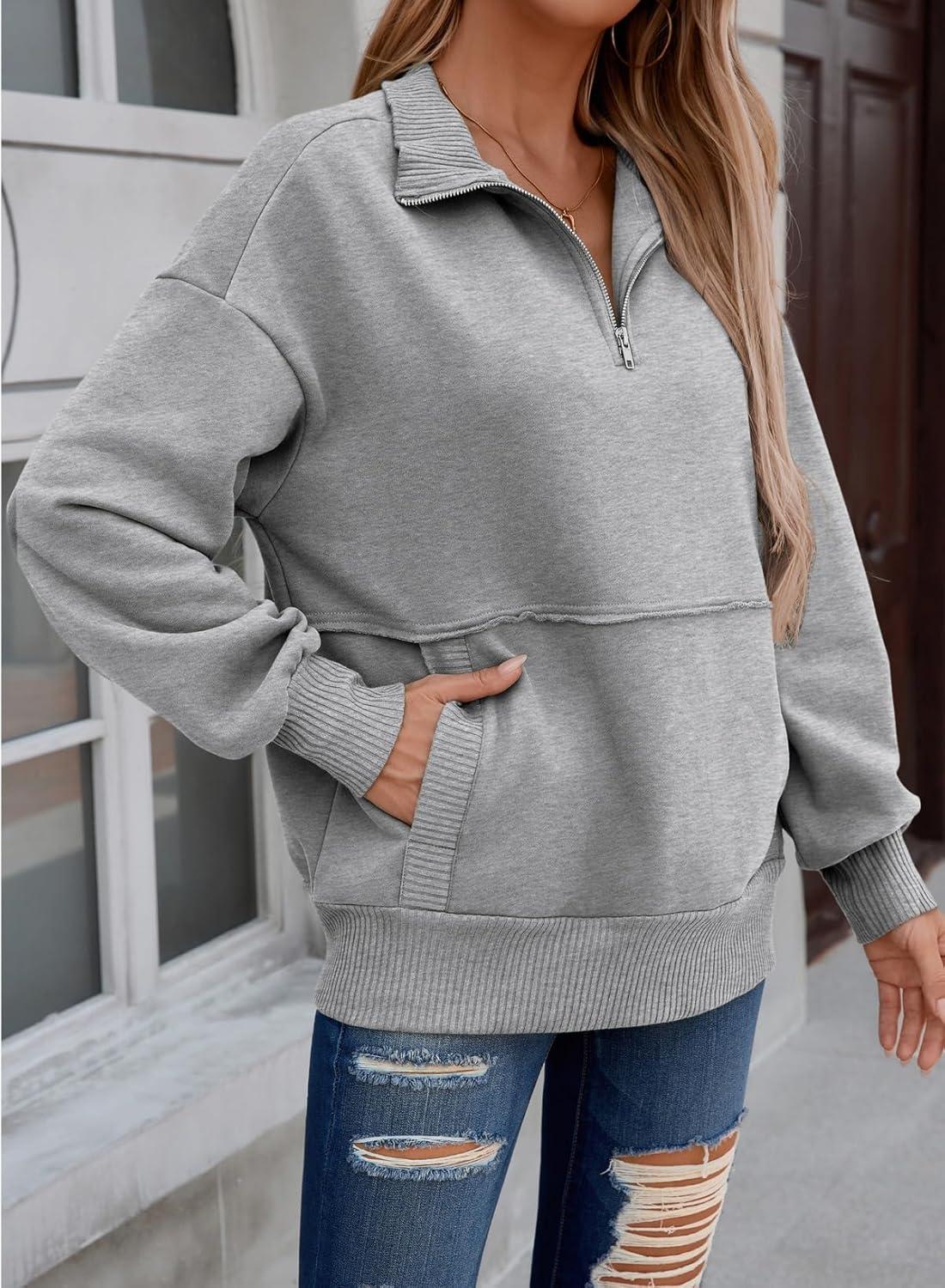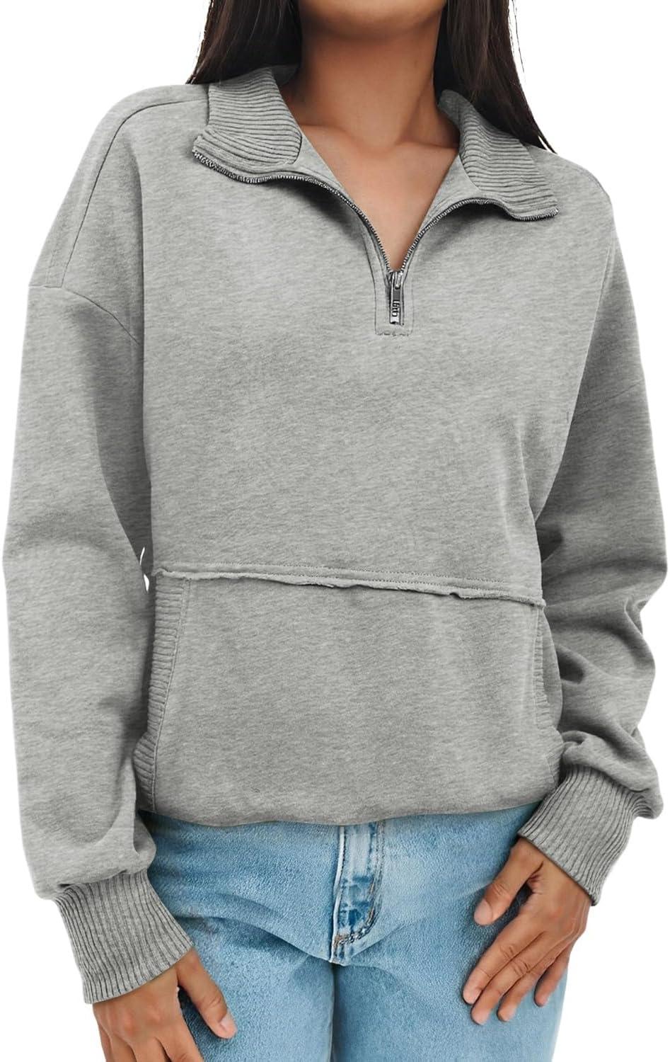 SHEWIN Womens Sweatshirt Casual Long Sleeve Half Zip Pullover Lightweight Sweatshirts Tops Fall Fashion Outfits 2025(Grey)